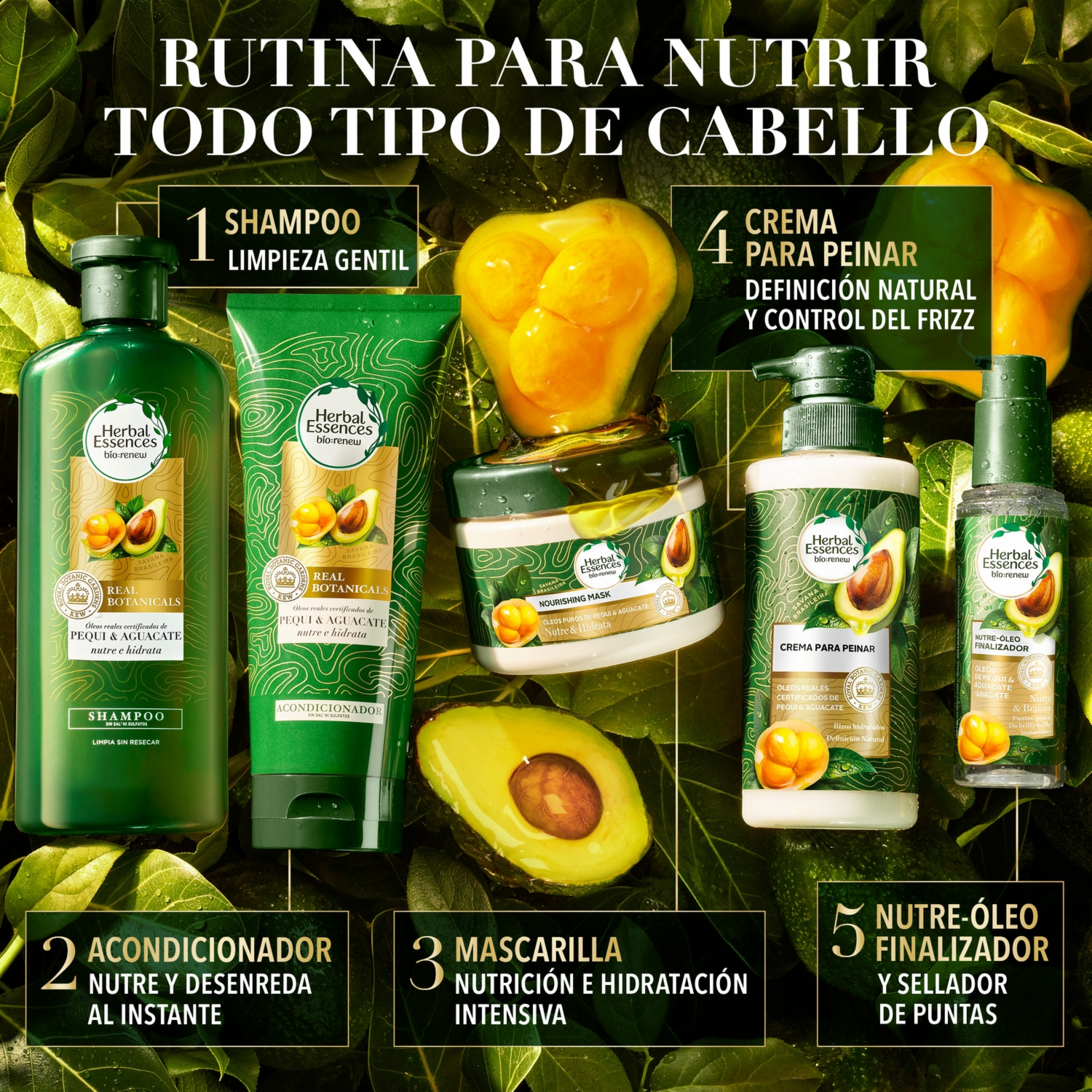 - ¡Descubre la más completa y poderosa rutina para cuidar el cabello rizado, seco y/o maltratado! La colección Herbal Essences Bio:Renew Nutre e Hidrata Pequi & Aguacate, será tu mejor aliada, proporcionando nutrición profunda e hidratación