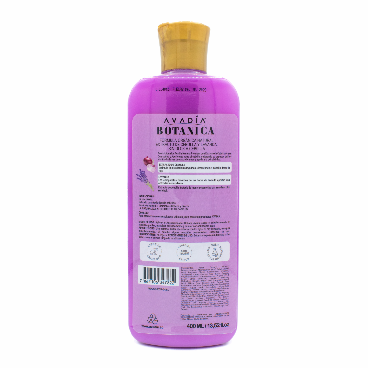 Acondicionador De Cabello Botánica Extraxto De Cebolla Estimula El Crecimiento Brillo Y Suavidad AVADÍA 400 Ml