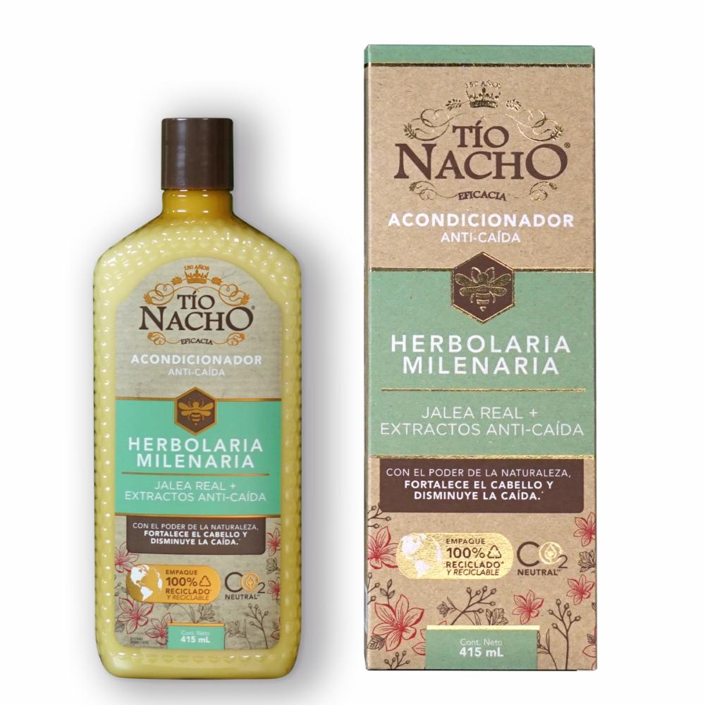 Acondicionador Anticaída para el fortalecimiento capilar, contiene Jalea Real + Herbolaria Milenaria. En Tío Nacho enaltecemos a la Jalea Real, como principal fuente de belleza y juventud de un cabello hermoso debido al reconocimiento de sus propiedades nutritivas hacia la fibra capilar. Contiene extractos de origen natural como el extracto de chile, el de bardana, de aloe vera y de jojoba