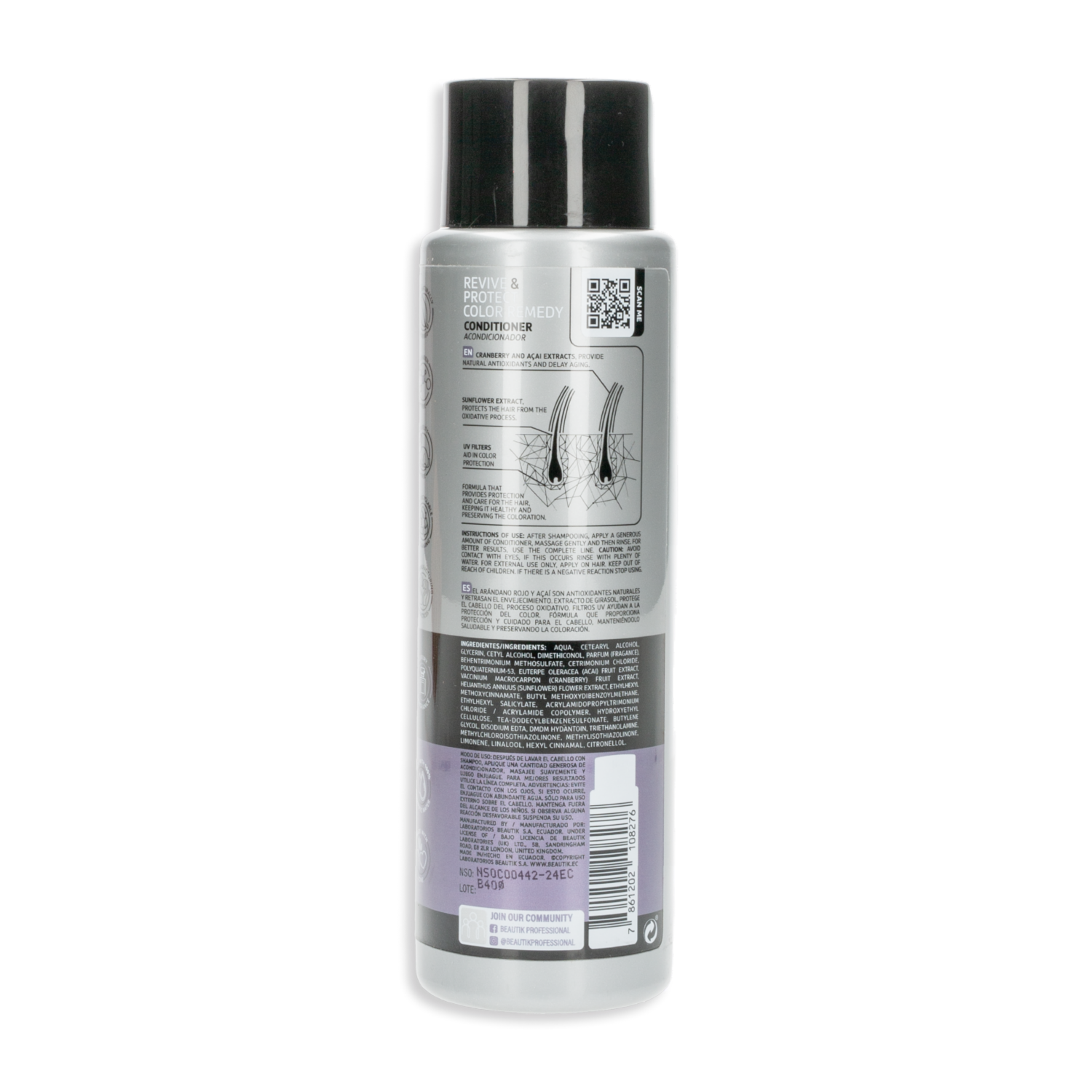 - Formulado con ingredientes especializados que ayudan a sellar el color y a prevenir la decoloración prematura, manteniendo tu cabello brillante y con un color vibrante por más tiempo