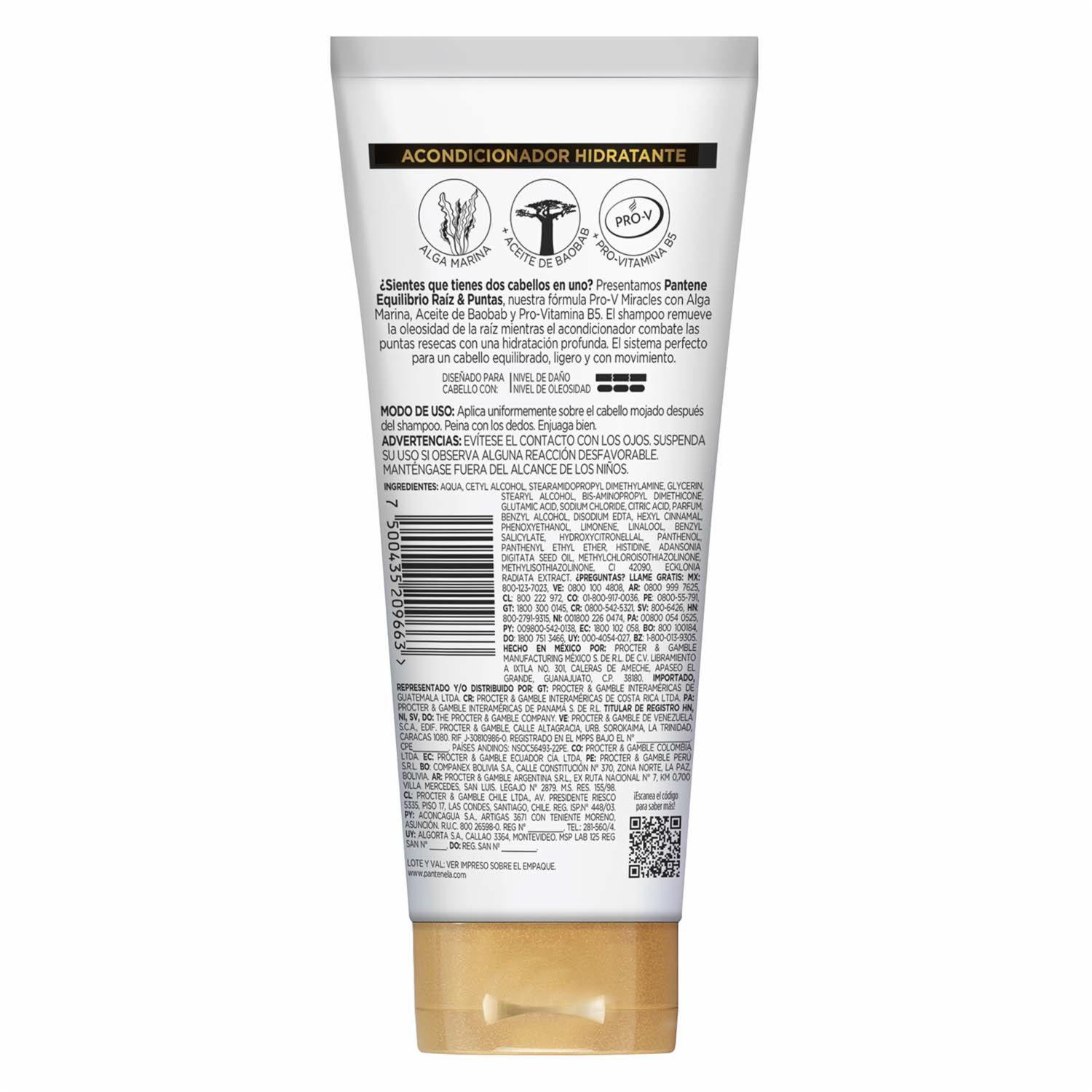 - El Acondicionador Para Cabello Mixto Y/o Teñido De Pantene Equilibrio Raíz Y Puntas Penetra Las Puntas Secas Y Maltratadas, Dejándolas Ligeras, Hidratadas Y Sin Frizz; Contiene Glicerina, Que Facilita El Enjuague Y Lo Deja Deja Suave Y Brillante