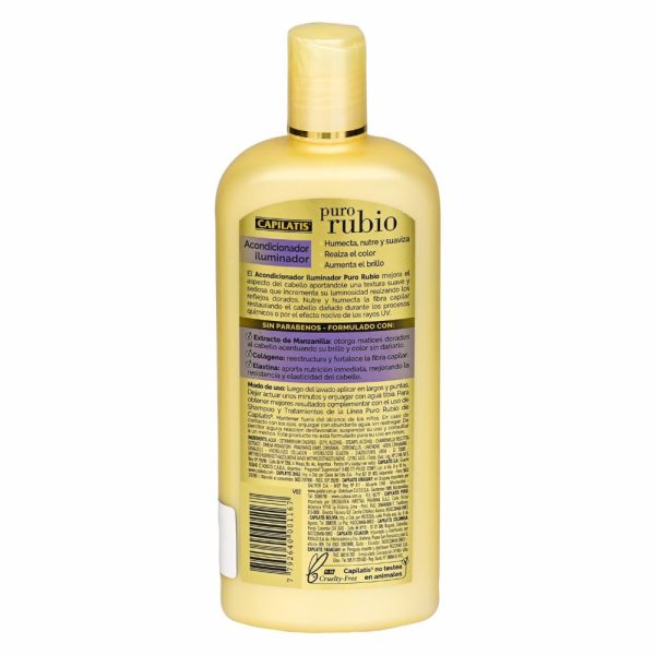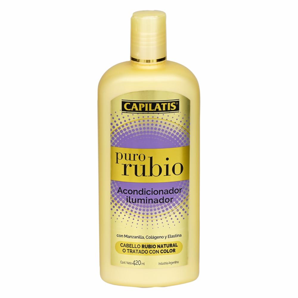 • El acondicionador Iluminador Puro Rubio de CAPILATIS es un producto diseñado especialmente para cabellos rubios, aportando brillo y luminosidad. Algunas de sus características son: - Contiene ingredientes específicos para realzar el color rubio y evitar la aparición de tonos amarillentos