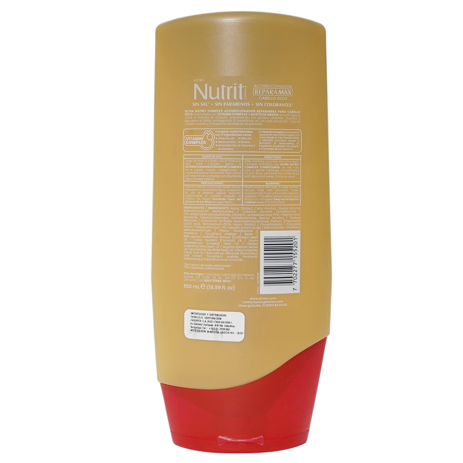 Acondicionador De Cabello Reparamax Aceite De Argán + Vitamin Complex NUTRIT 550 Ml