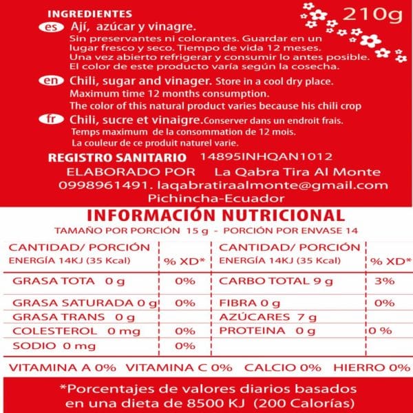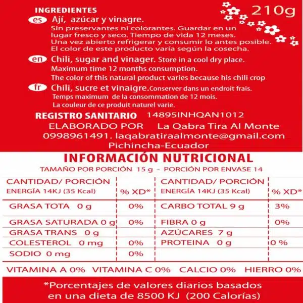 Dulce de ají para dippear cada frasquito contiene 210g , Sin preservantes ni colorantes artificiales, Ideal para mezclar con queso crema o mayoneza, lamprear carnes y mariscos