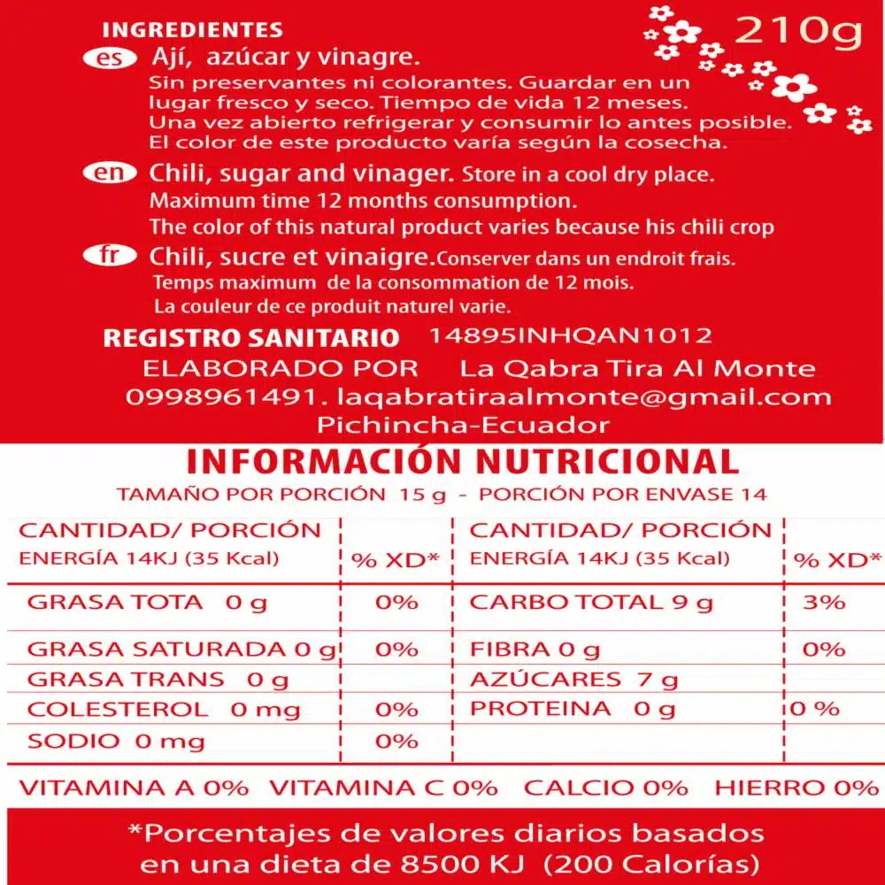 Aderezo Dulce de Ají LA QABRA TIRA AL MONTE 210 G