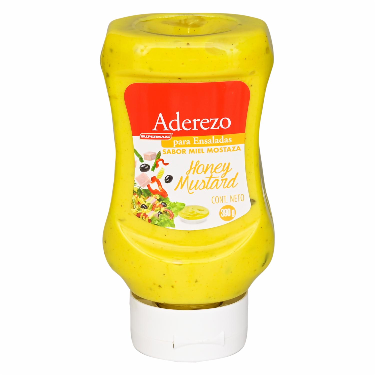 Aderezo sabor a miel y mostaza supermaxi, ideal para acompañar en ensaladas