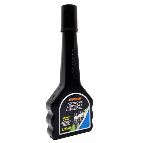 ADITIVO DE LIMPIEZA Y LUBRICIDAD AUTOMAX: Aditivo para Diesel limpieza y lubricidad Automax Aditivo de limpieza y mejorar de lubricidad del Diesel. 125 mL Botella de 125 mL de uso directo al tanque de Diesel. Marca AUTOMAX. Ayuda a mantener limpias las líneas de alimentación del combustible y los inyectores. Mejora la lubricidad del Diesel. Aditiva hasta 16 galones de combustible. Uso recomendado de una botella en cada tanqueada.