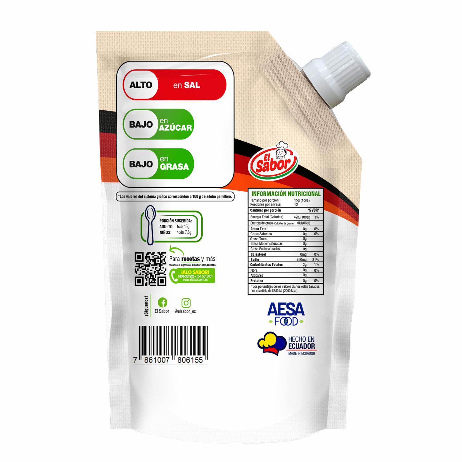 Adobo Parrillero Con Sal Marina EL SABOR 200 G