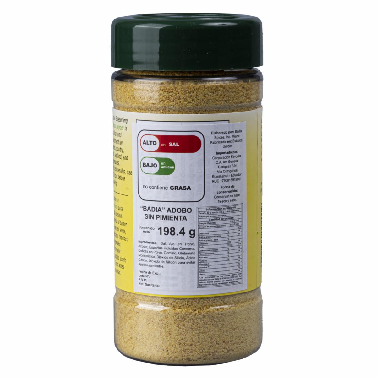 consultando preciosAdobo Sin Pimienta BADIA 198.40 G – BADIA. Disponible en nuestros locales. Precio y stock pueden variar según la tienda.