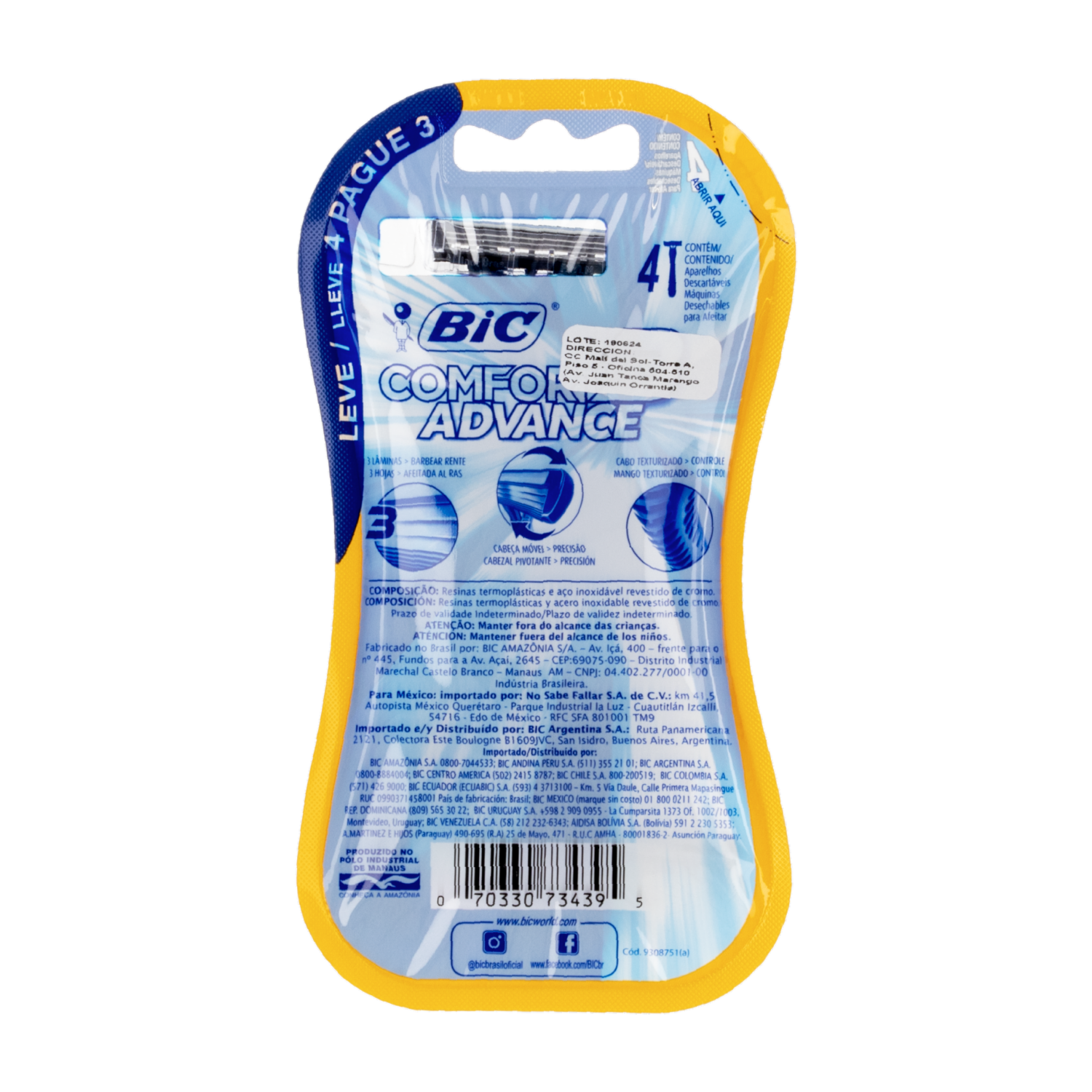consultando preciosAfeitadora Desechable Comfort 3 Advance BIC X 4 Uds – BIC. Disponible en nuestros locales. Precio y stock pueden variar según la tienda.