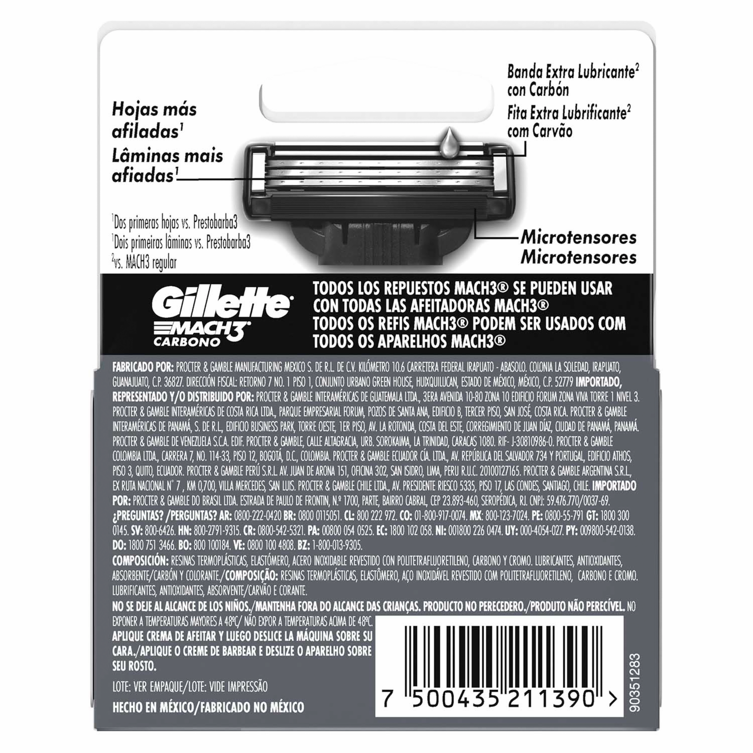 - Máquina de afeitar gillette mach3 carbono te da una afeitada al ras que remueve impurezas de la piel dejando una sensación de limpieza profunda