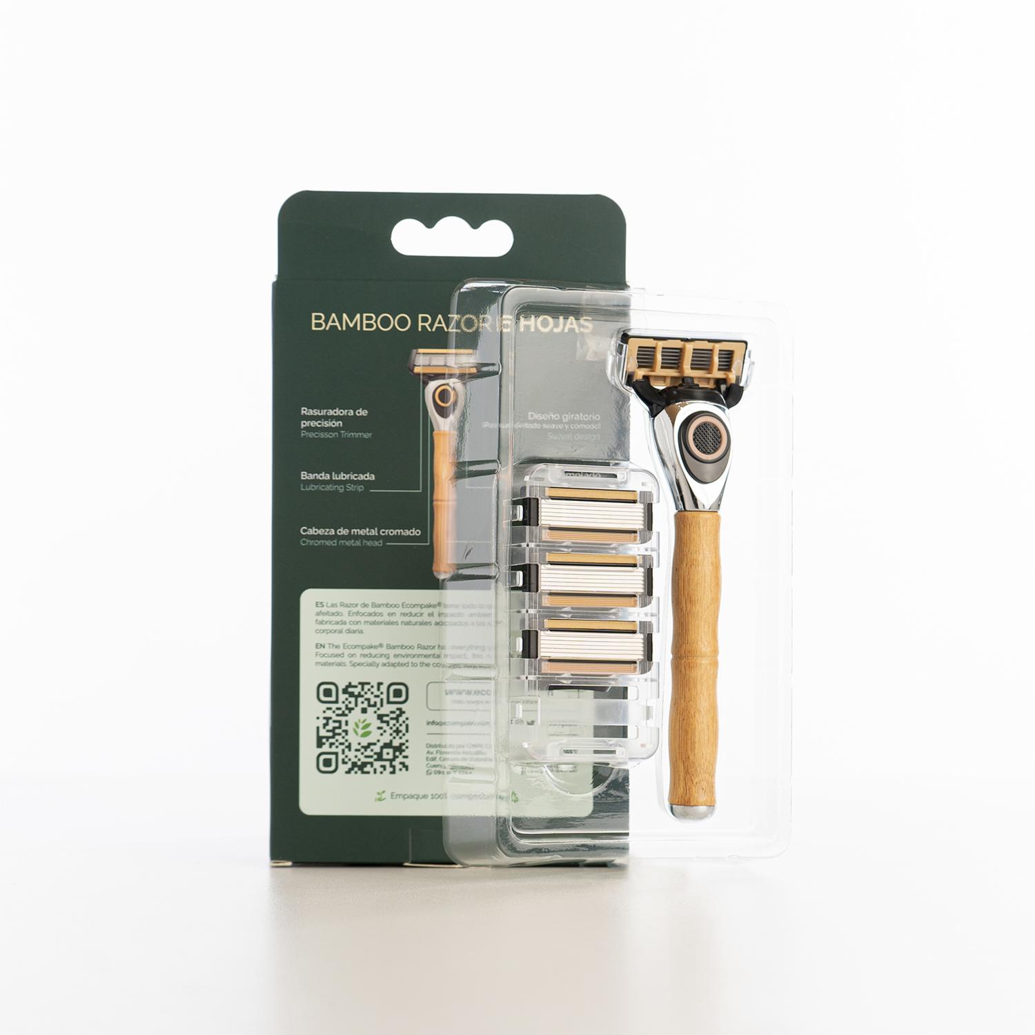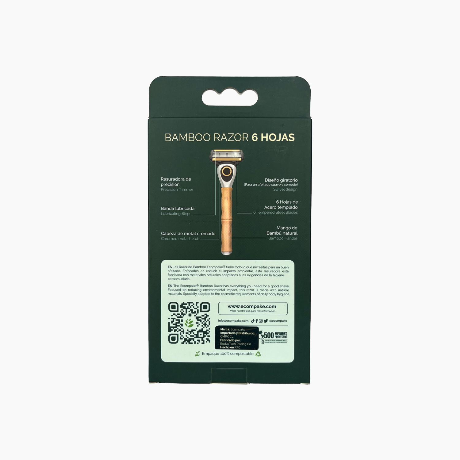 - Afeitadora ECOMPAKE bamboo hombre razor 6 hojas de acero templado
