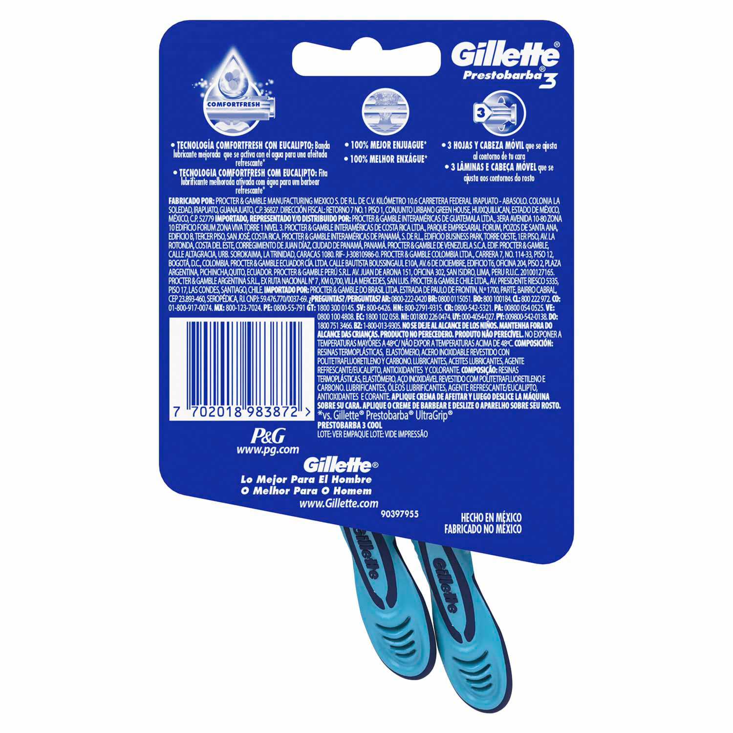 - La afeitadora desechable Prestobarba 3 Ultra Suave de Gillette está diseñada para ofrecer un afeitado cómodo y suave, ideal para quienes buscan un buen rendimiento con un diseño simple