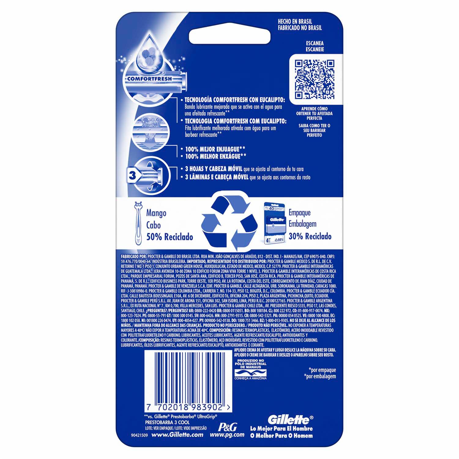 Afeitadora Desechable Caballero Prestobarba 3 Fresh Con Eucalipto GILLETTE X 4 Uds