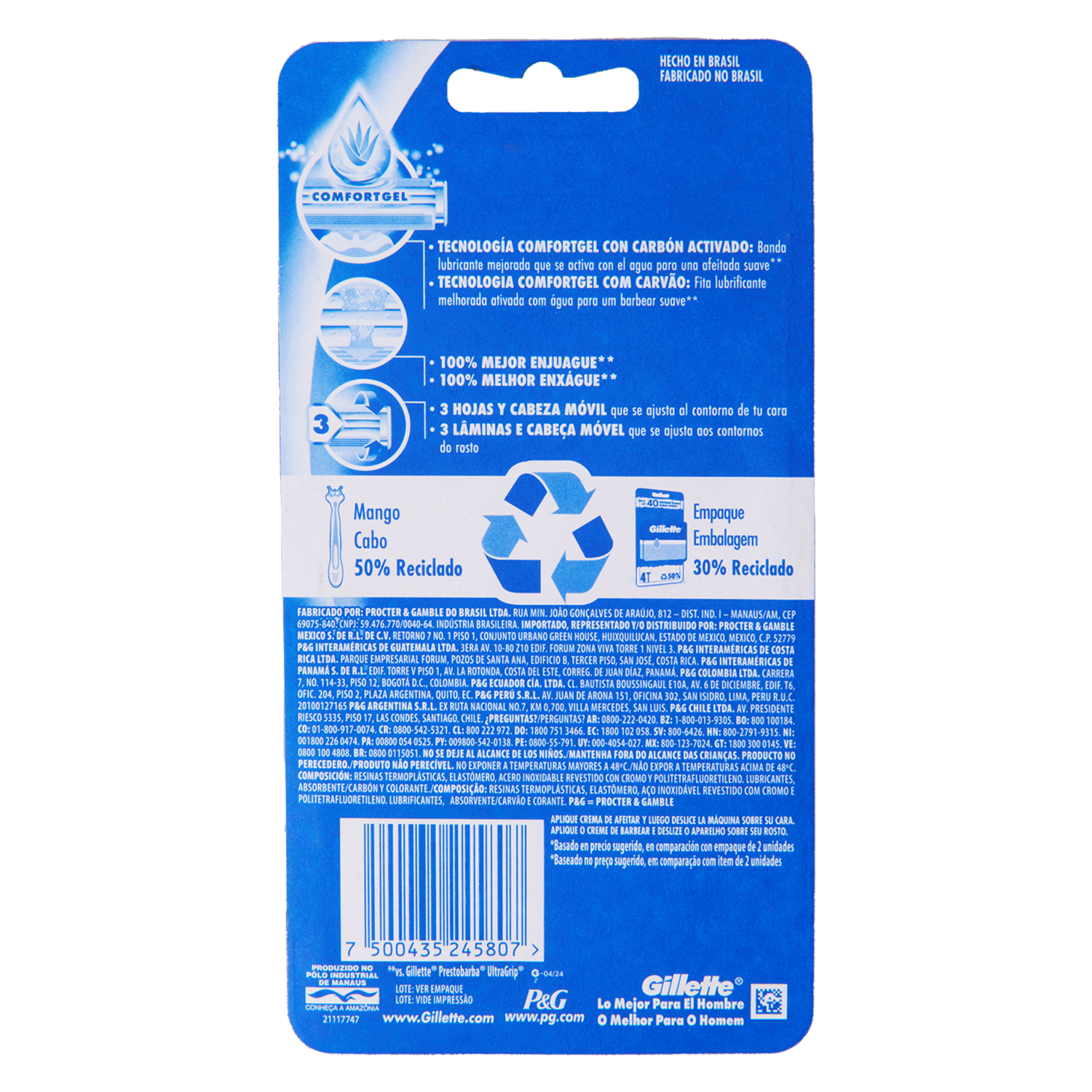 Afeitadora Desechable Prestobarba 3 Carbono Con Carbón Activado GILLETTE 4 Piezas