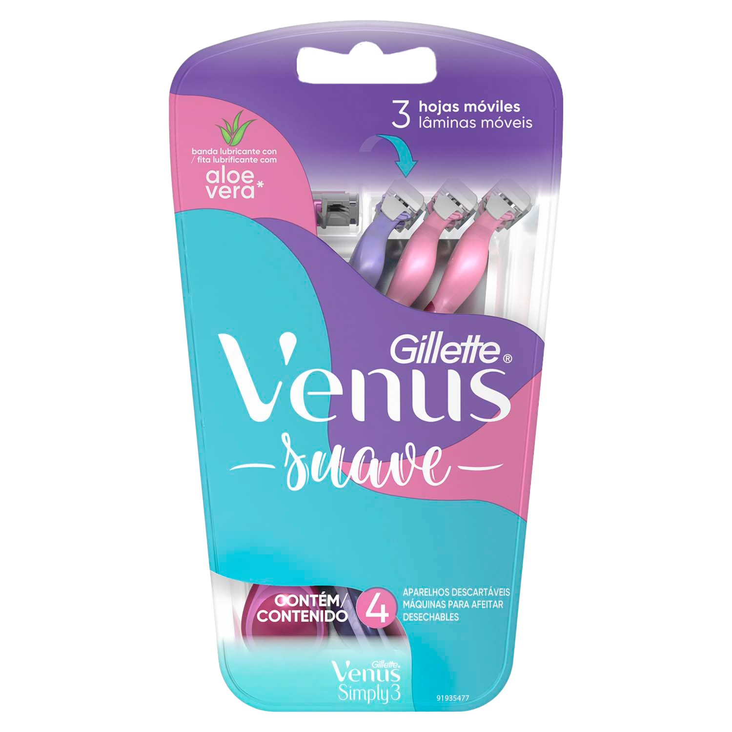 - La Máquina De Afeitar Desechable Gillette Venus Suave Cuenta Con Una Banda Lubricante Que Contiene Un Toque De Aloe Vera Para Un Buen Desplazamiento, Por Lo Que Te Ayudará A Conseguir Una Depilación Suave Con Menos Irritación* (vs