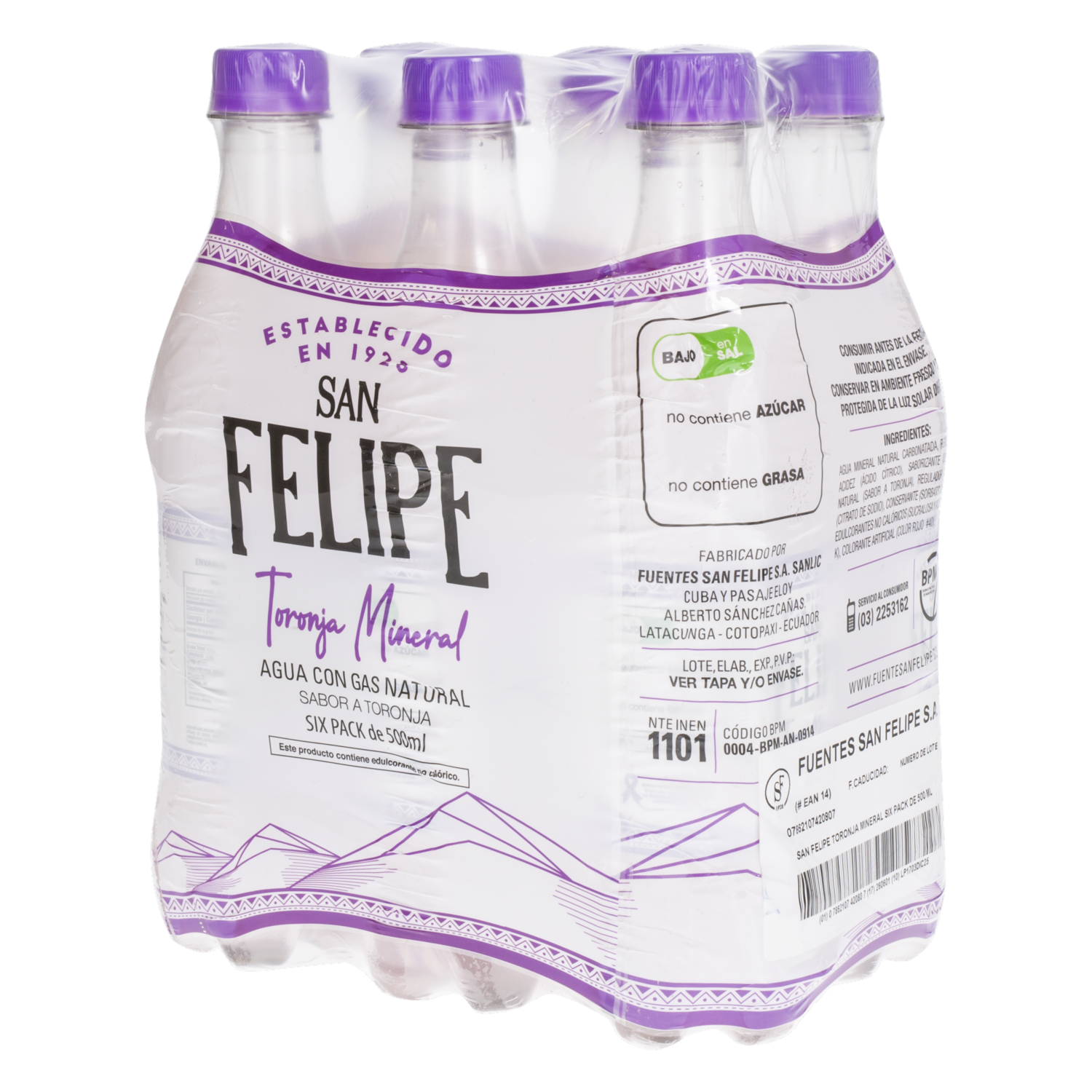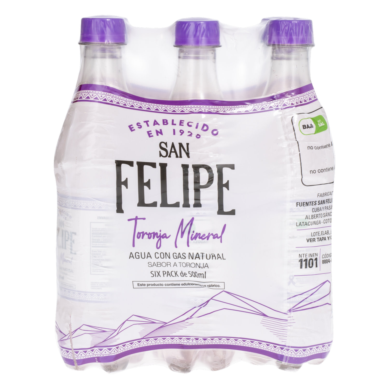 - Agua con gas San Felipe sabor toronja combina frescura, burbujas y un toque cítrico irresistible. Perfecta para hidratarte con sabor o acompañar tus comidas. Una opción refrescante para compartir en cualquier ocasión