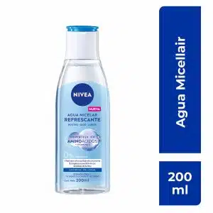 Bríndale a tu rostro un verdadero cuidado con el Agua micelar todo en 1 para todo tipo de piel, incluso piel sensible, de Garnier Skin Active. Su presentación de 400 mililitros rinde hasta 200 usos. Fórmula sin perfume ni parabenos. -Remueve células muertas. -Con micelas que remueven la suciedad, el maquillaje y el sebo. -Fórmula que limpia cara, ojos y labios con ayuda de un algodón. -Eficacia científicamente comprobada y verificada
