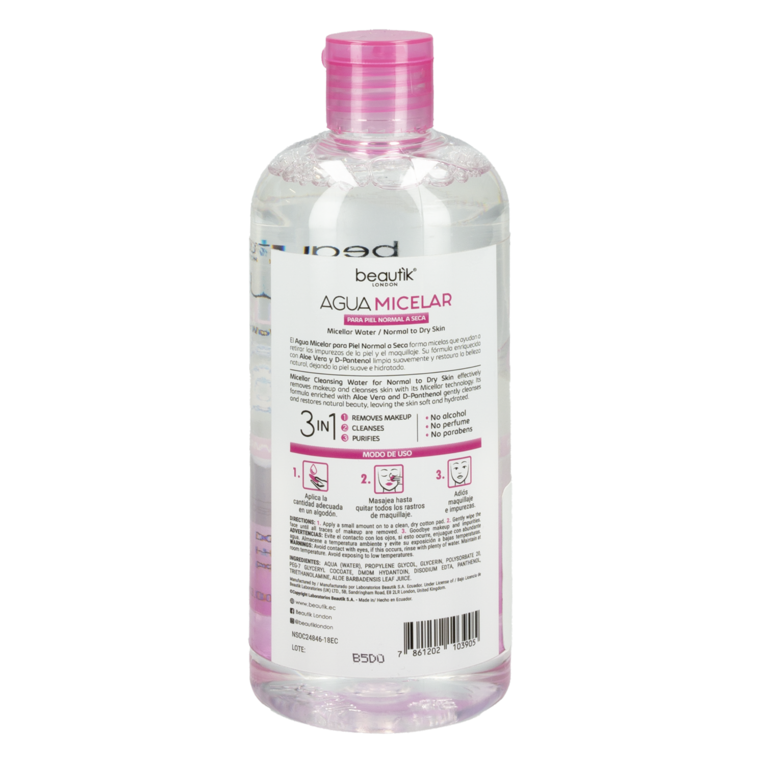 consultando preciosAgua Micelar Piel Normal BEAUTÌK LONDON 385 Ml – BEAUTIK LONDON. Disponible en nuestros locales. Precio y stock pueden variar según la tienda.