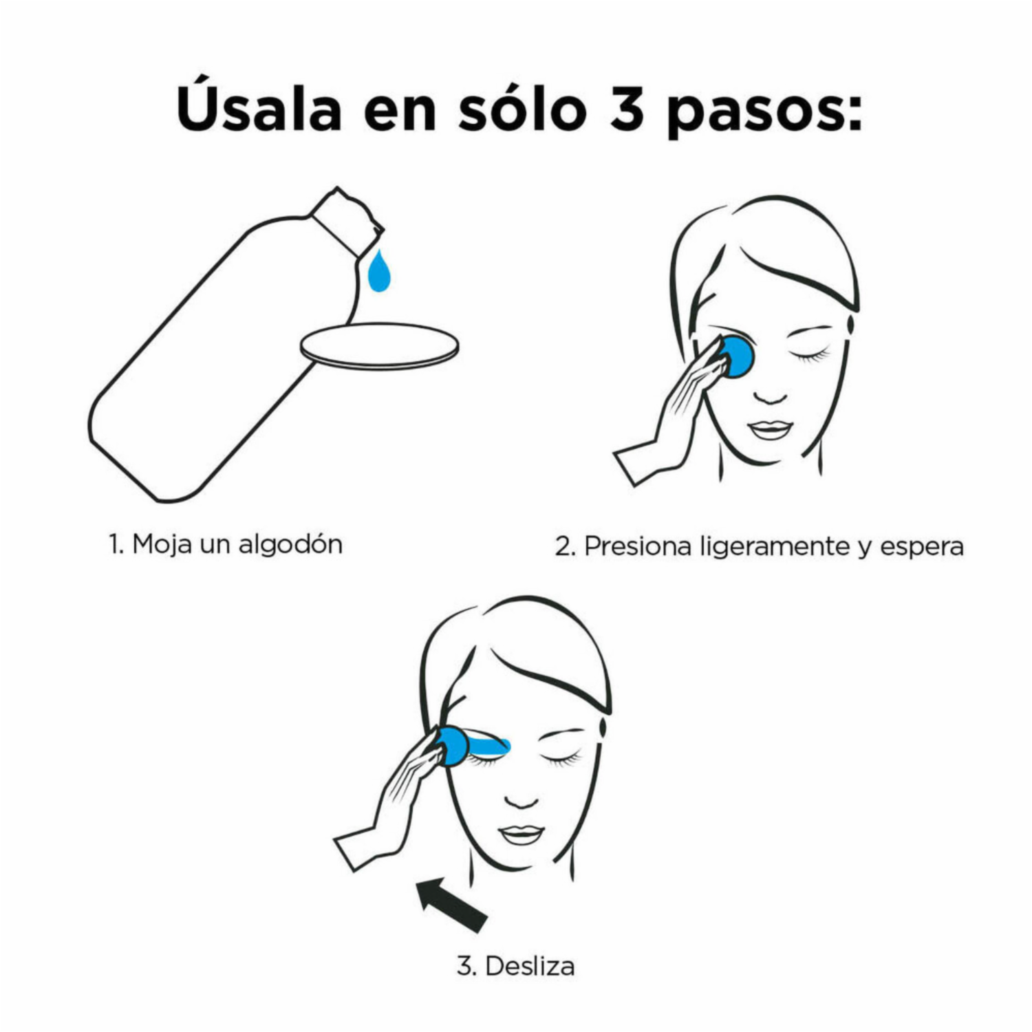 -Se aplica sobre el rostro, ojos y labios con un algodón.