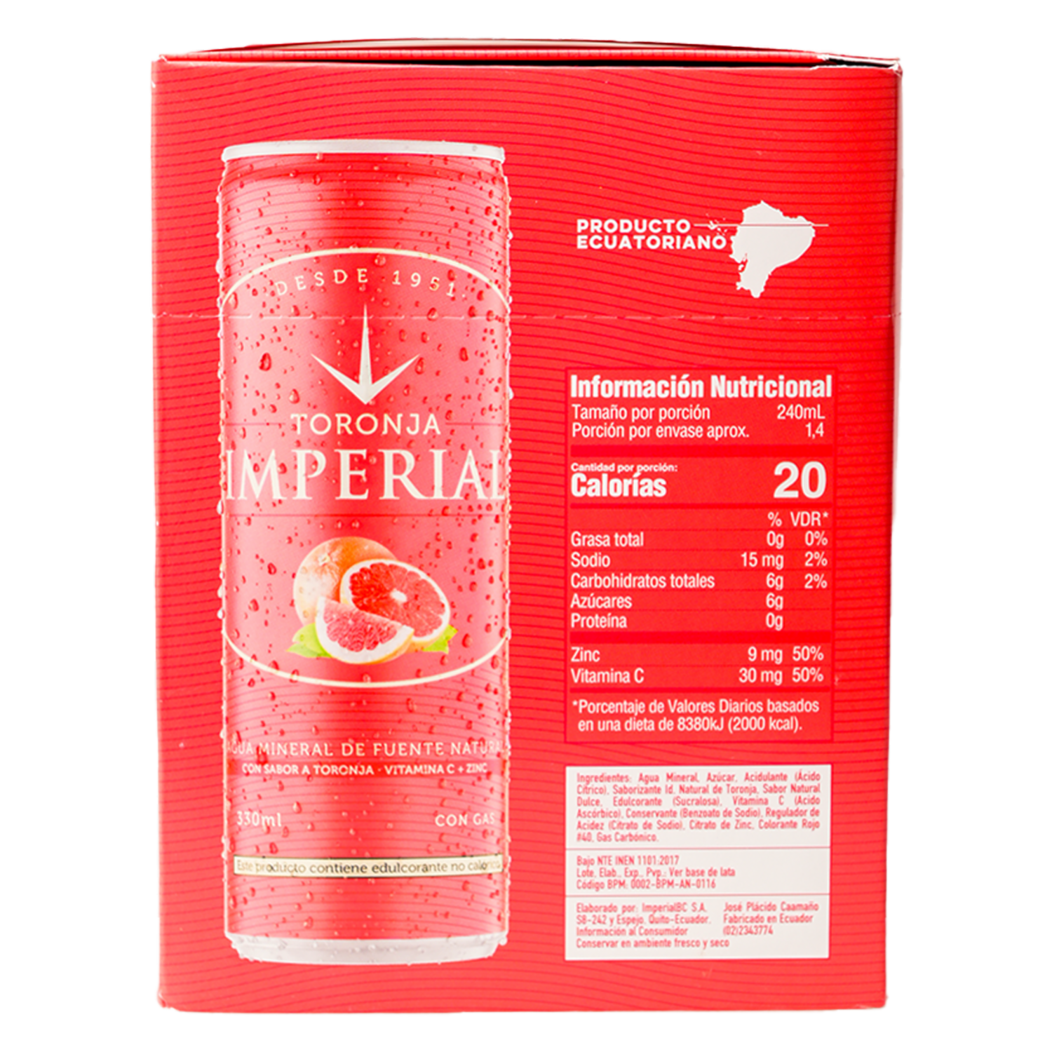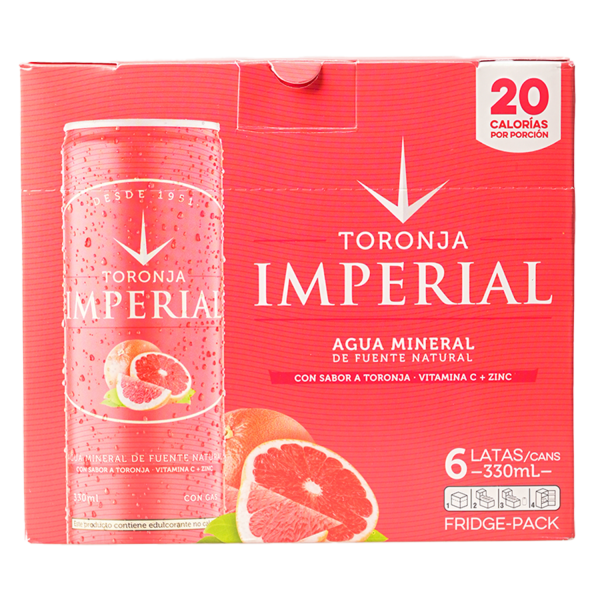 Agua Mineral Con Sabor A Toronja IMPERIAL 6 X 330 Ml