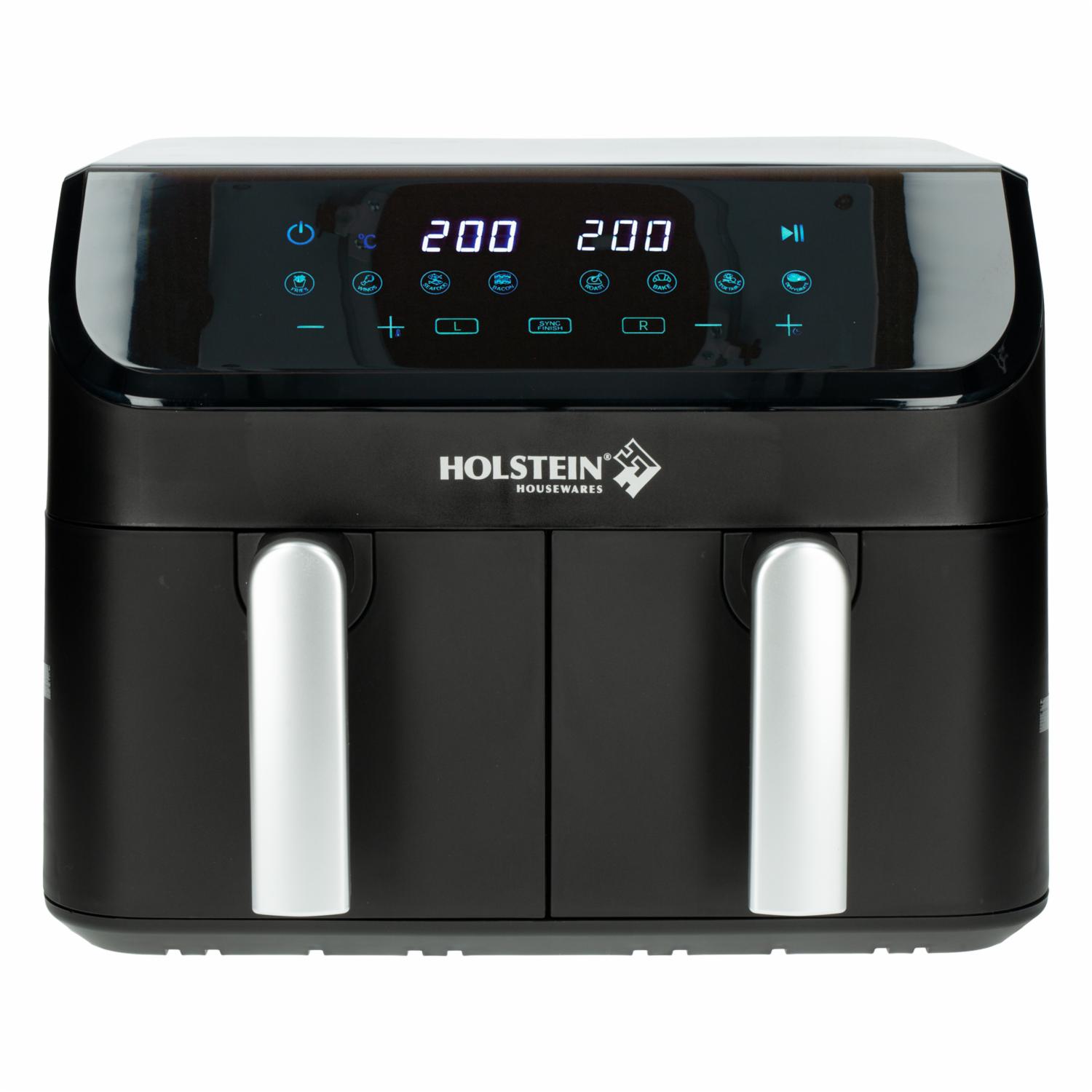 - Con la freidora digital Holstein Housewares de 9,5 cuartos de galón con doble cesta, ¡Saborea tus platos favoritos con menos o sin aceite! Su tecnología de aire caliente cocina los alimentos haciendo circular aire caliente en todas las direcciones, lo que garantiza una cocción rápida y uniforme.
