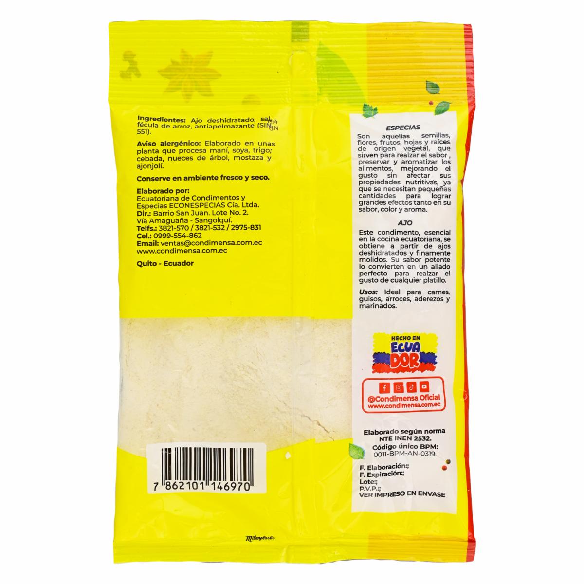 consultando preciosAjo En Polvo CONDIMENSA 100 G – CONDIMENSA. Disponible en nuestros locales. Precio y stock pueden variar según la tienda.