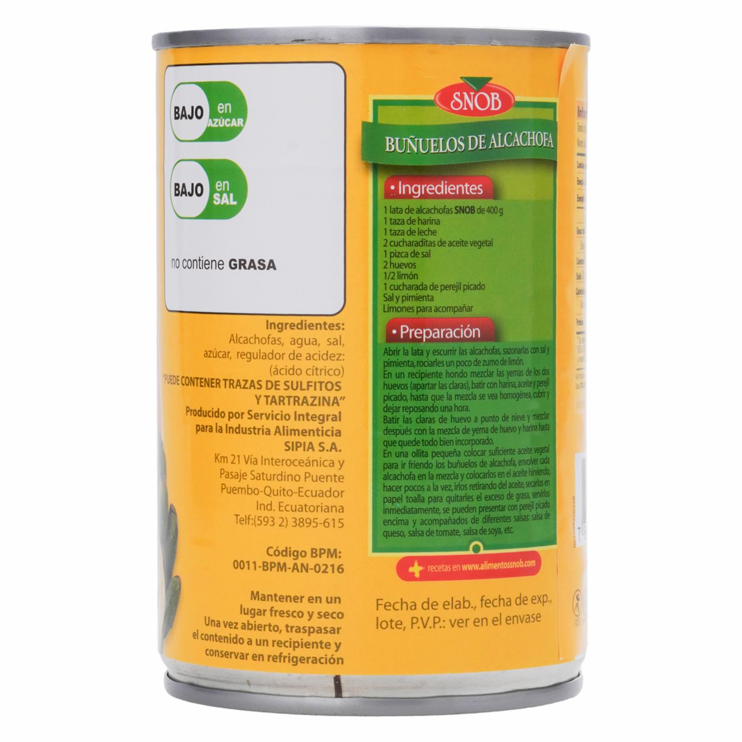 Alcachofa En Mitades SNOB Lata – SNOB. Disponible en nuestros locales. Precio y stock pueden variar según la tienda.