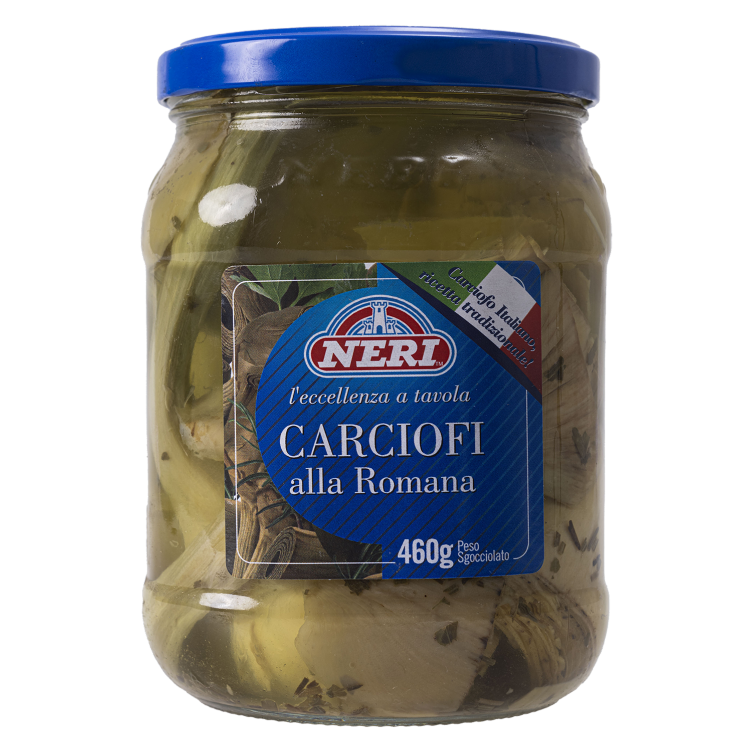 - - Las alcachofas a la romana NERI son un producto de alta calidad y sabor,- Son elaboradas con alcachofas frescas y seleccionadas cuidadosamente,- Se cocinan de forma tradicional, siguiendo la receta clásica de la cocina romana,- Tienen una textura tierna y crujiente por fuera, y un corazón suave y sabroso por dentro,- Son ideales como entrante o acompañamiento en cualquier comida o cena,- Son una fuente natural de fibra, vitaminas y minerales,- Se pueden disfrutar tanto frías como calientes