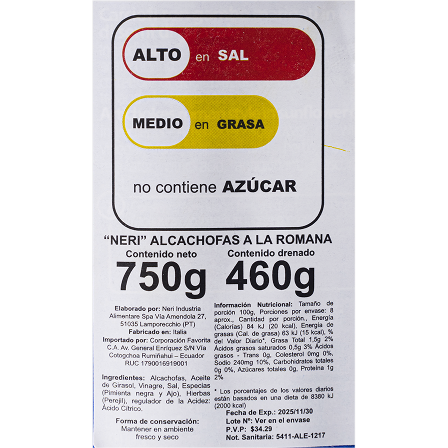 consultando preciosAlcachofas A La Romana NERI 750 G – NERI. Disponible en nuestros locales. Precio y stock pueden variar según la tienda.