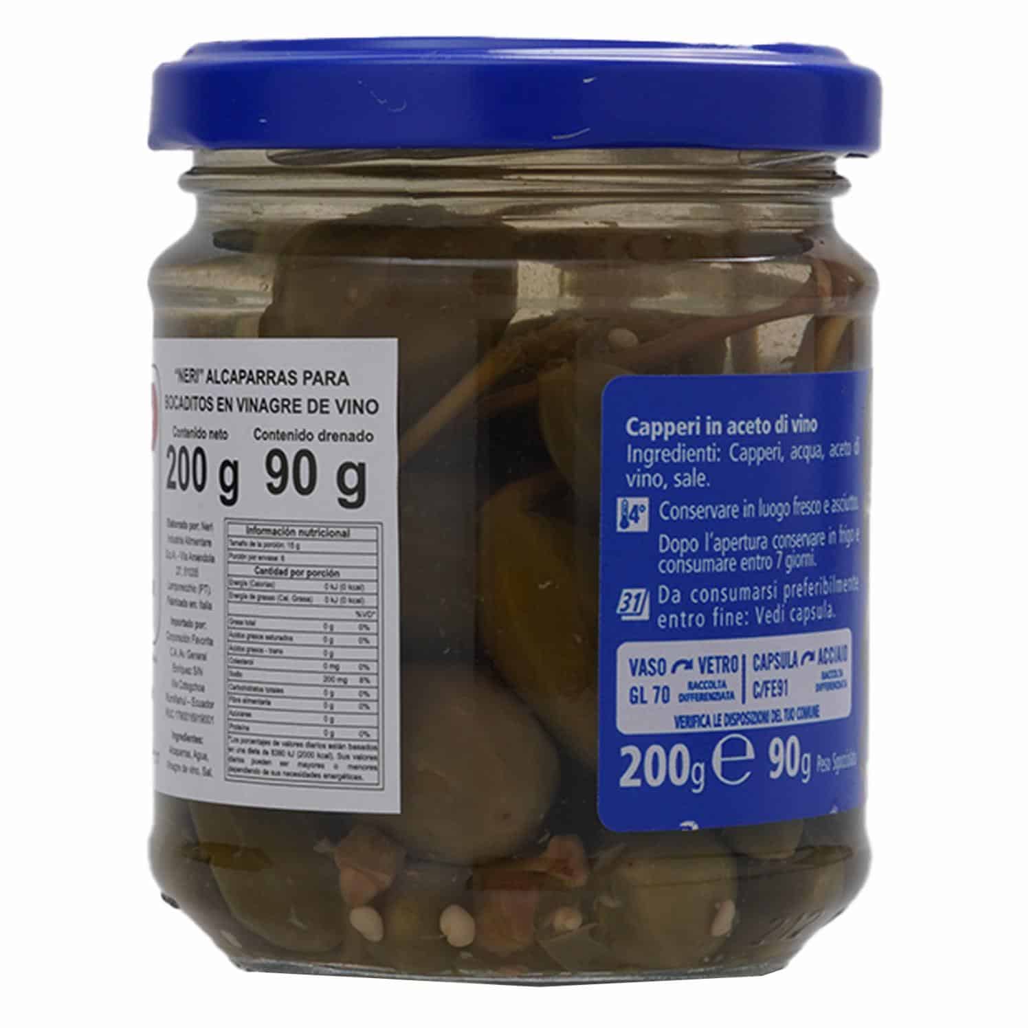 - Las alcaparras son un condimento muy utilizado en la cocina mediterránea,- Son pequeñas y de color verde oscuro, con un sabor ácido y ligeramente salado,- Son ideales para añadir a bocadillos, salsas, ensaladas y platos de pescado,- Tienen propiedades antioxidantes y antiinflamatorias,- Son bajas en calorías y ricas en fibra, vitaminas y minerales,- Ayudan a mejorar la digestión y estimulan el apetito,- Se pueden conservar en vinagre para prolongar su vida útil