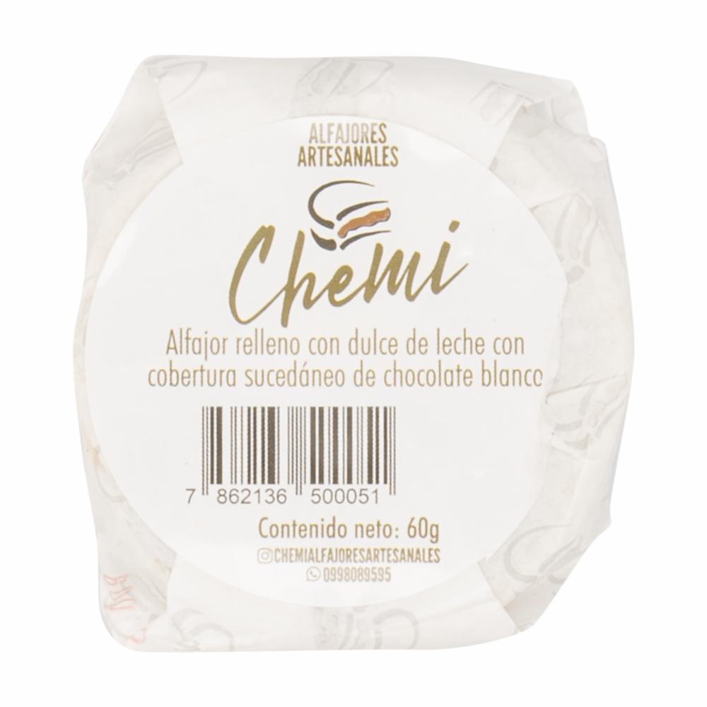 Alfajor Individual Blanco CHEMI 60 G – CHEMI. Disponible en nuestros locales. Precio y stock pueden variar según la tienda.