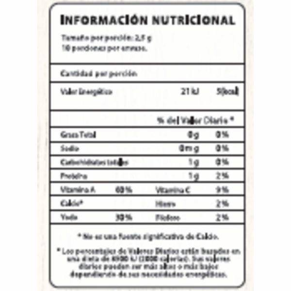 • Alga marina deshidratada y asada. Rica en proteínas y vitaminas con un alto contenido de calcio
