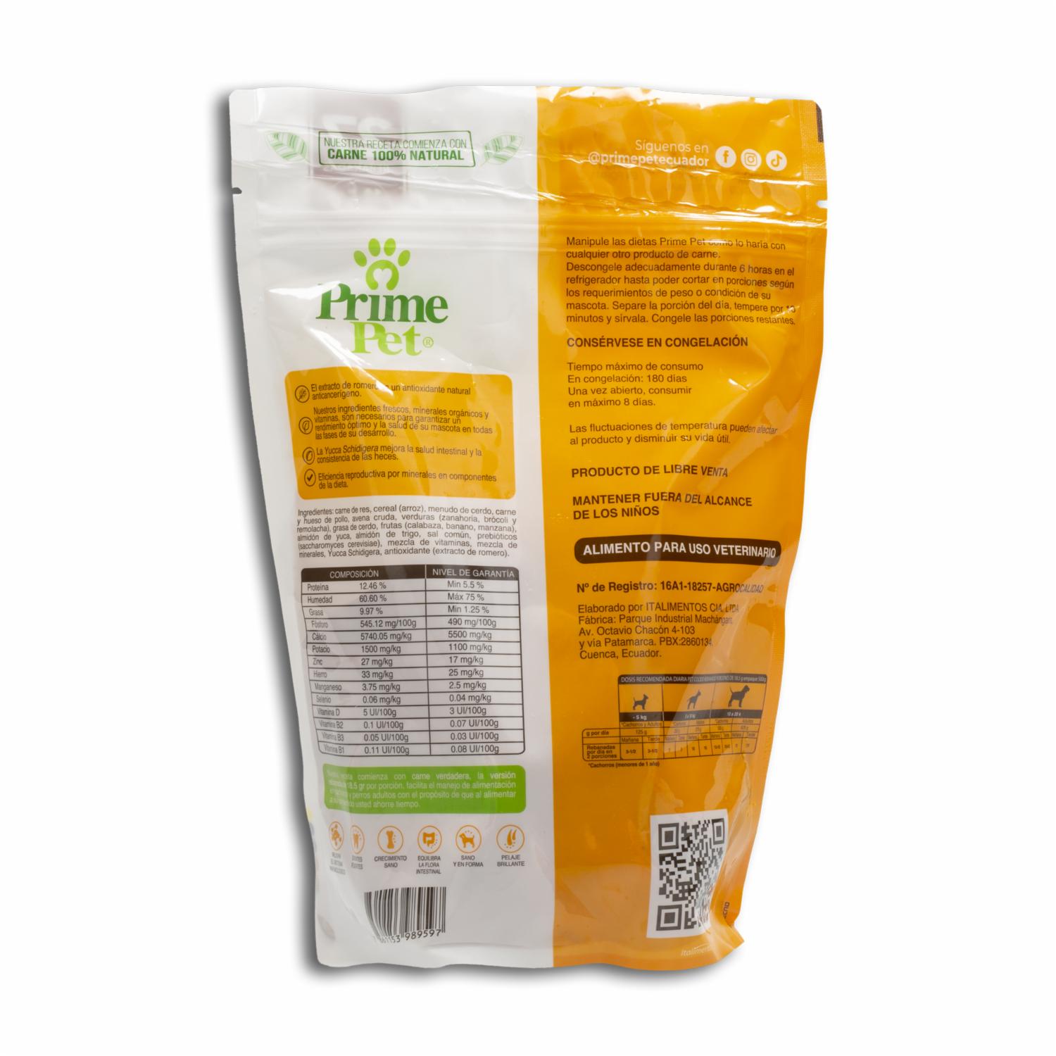 Alimento Cocido Res Pollo Y Cerdo PRIME PET 500 G
