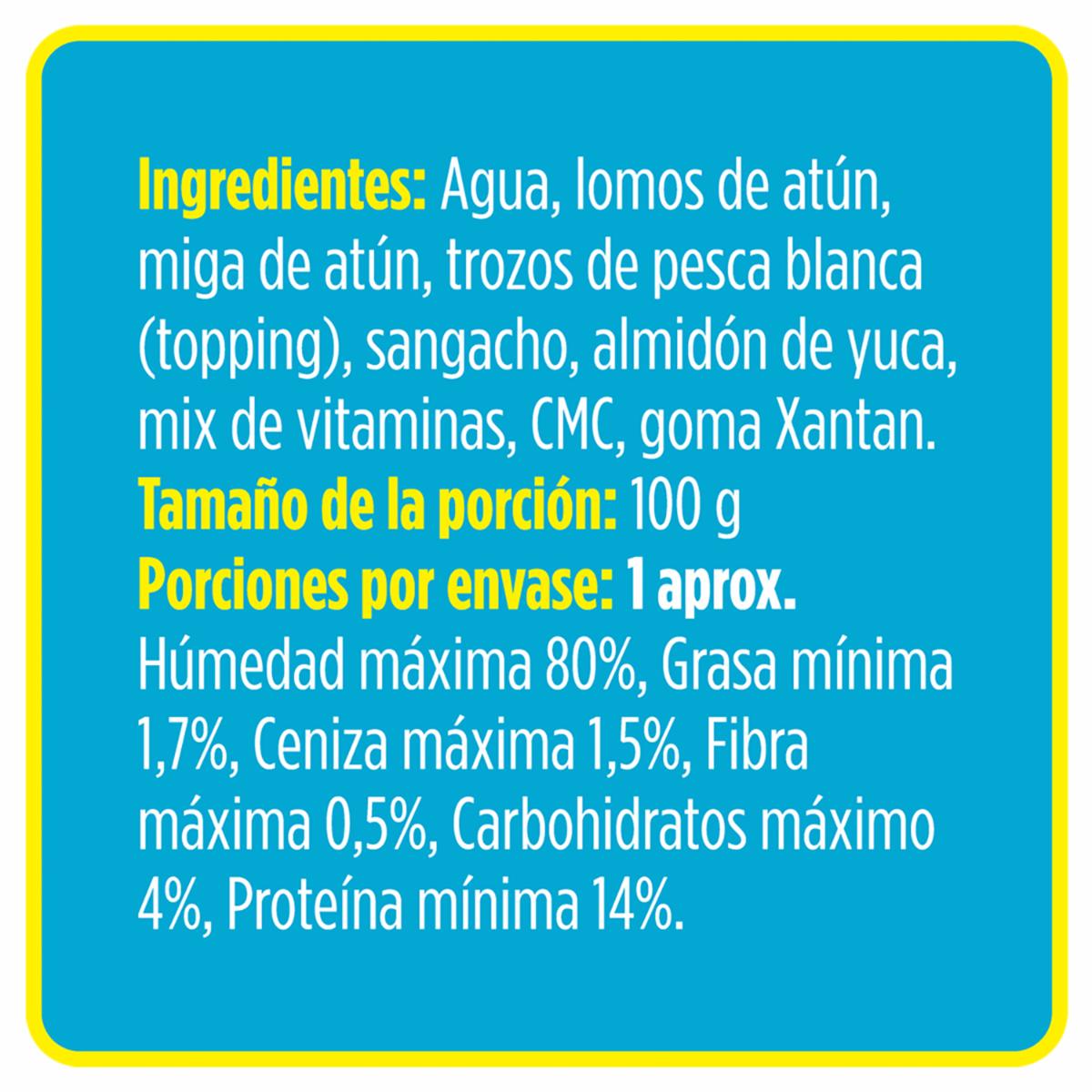 - Alimento para gatos hecha con atún y pesca blanca para brindar a tu mascota los nutrientes, vitaminas y minerales que necesita