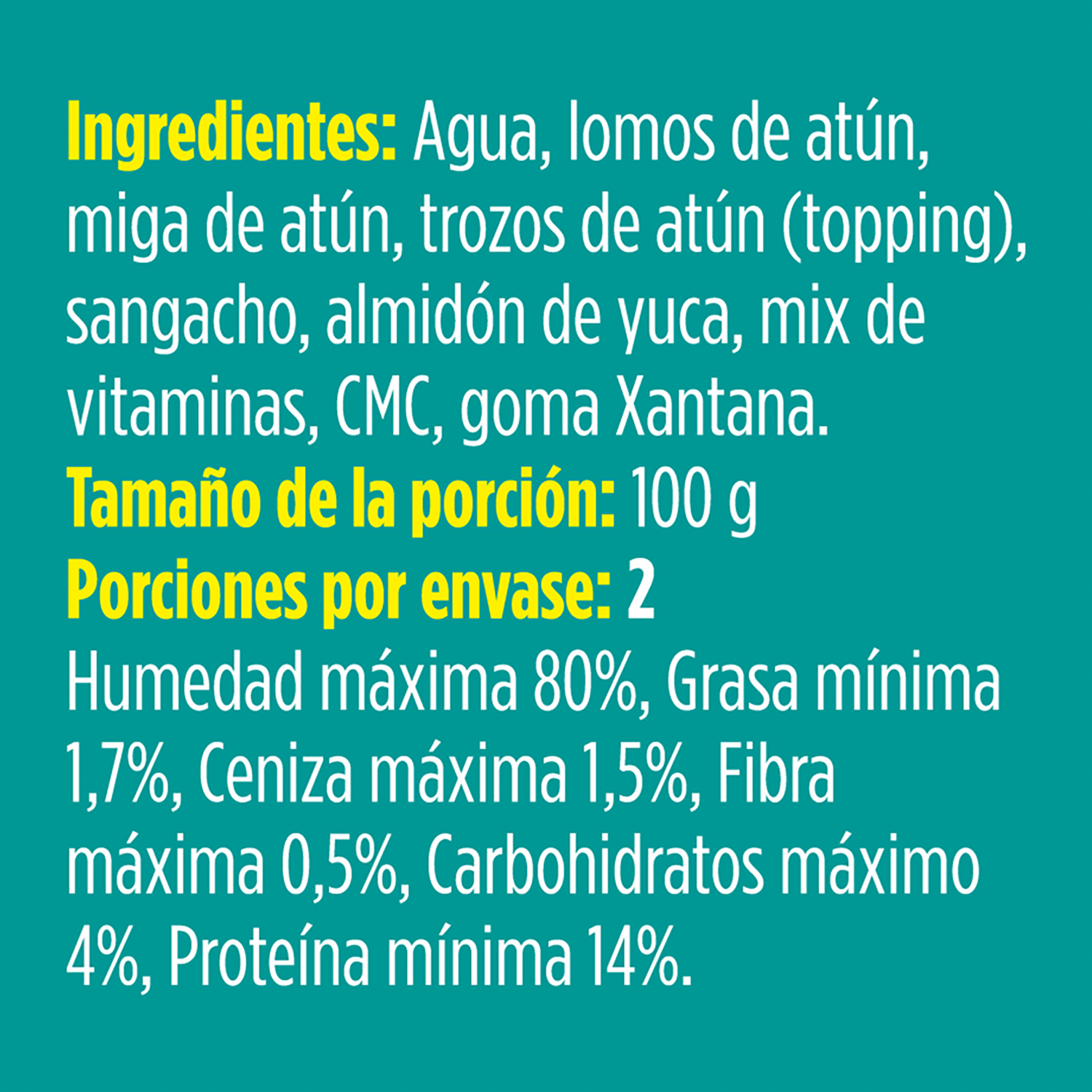 - Alimento para gatos hecha con atún para brindar a tu mascota los nutrientes, vitaminas y minerales que necesita