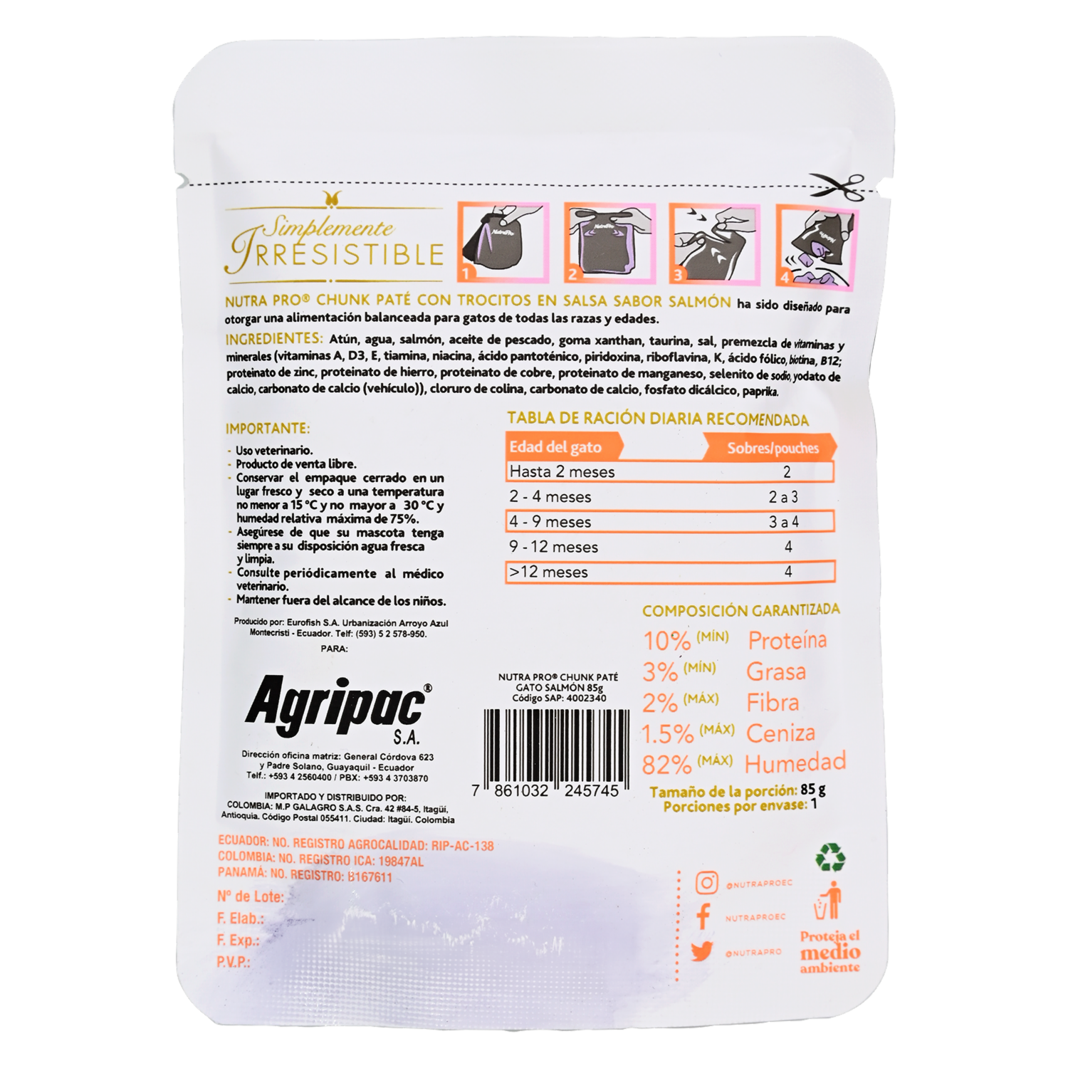 Alimento Húmedo Para Gatos Sabor A Salmón Pouch NUTRAPRO 85 G