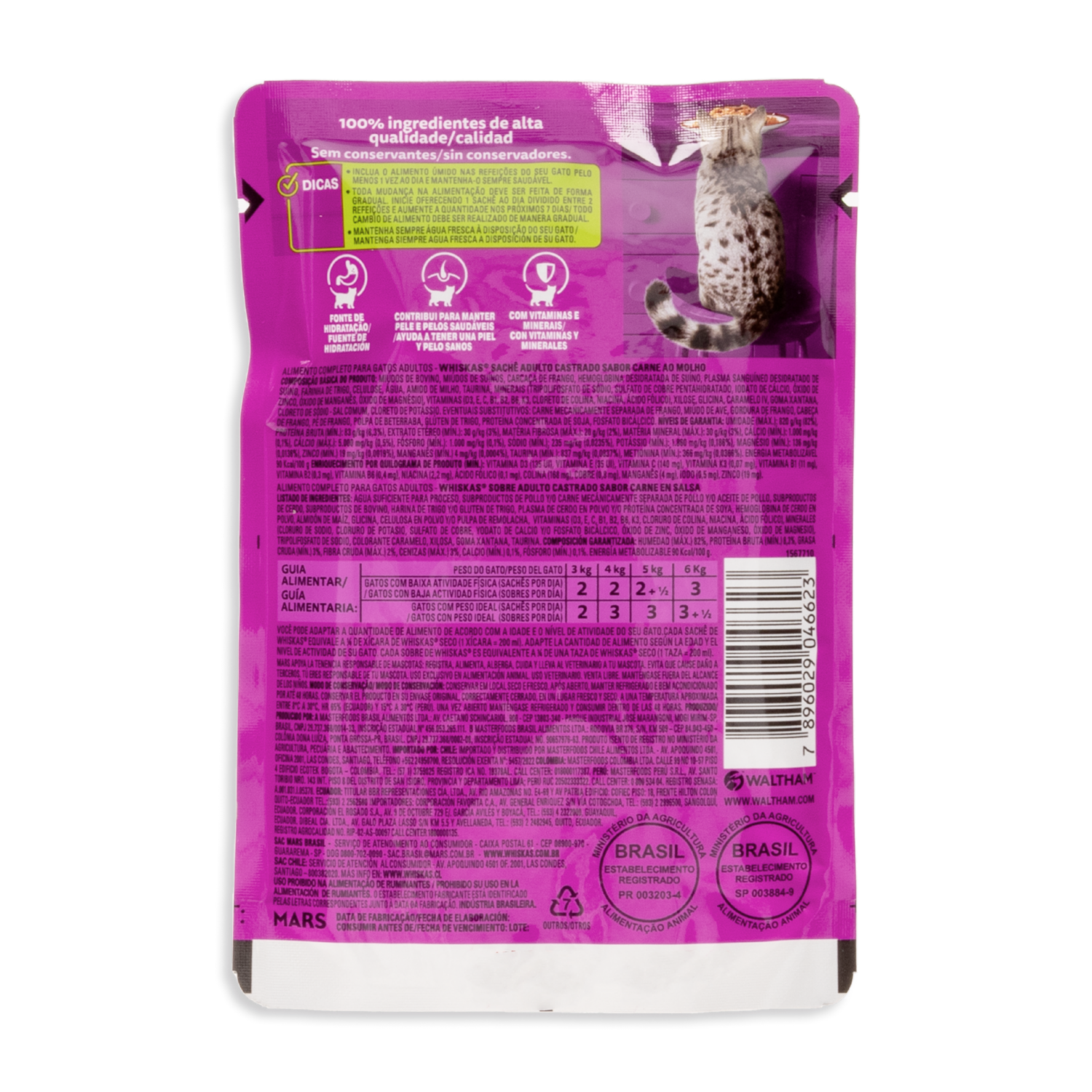 Alimento Para Gatos Adulto Castrado De Carne WHISKAS 85 G