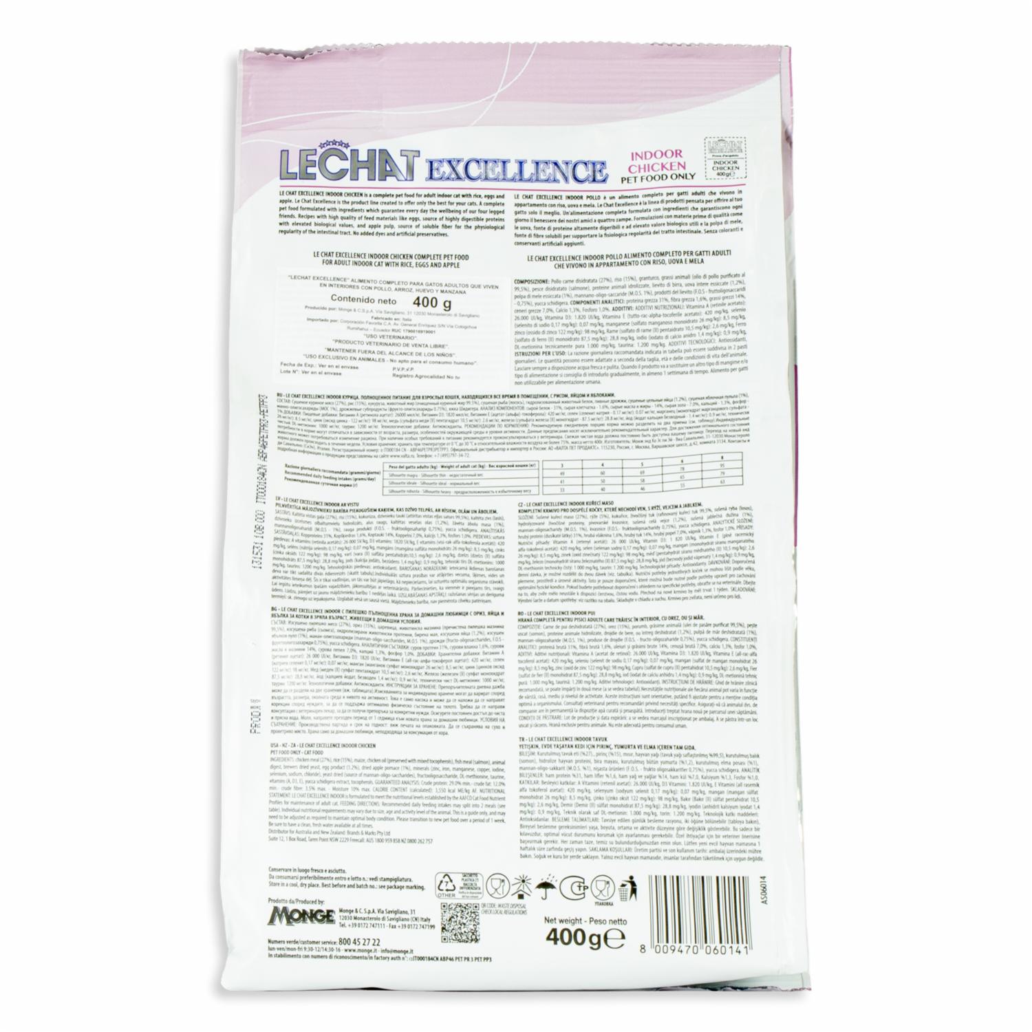 • Le Chat Excellente Indoor Chicken es un alimento completo para gatos adultos que viven en interiores con arroz, huevos y manzana. Le Chat Excellence es la línea de productos diseñada para ofrecerle a tu gato solo lo mejor. Una dieta completa formulada con ingredientes que garantizan el bienestar de nuestros amigos de cuatro patas cada día