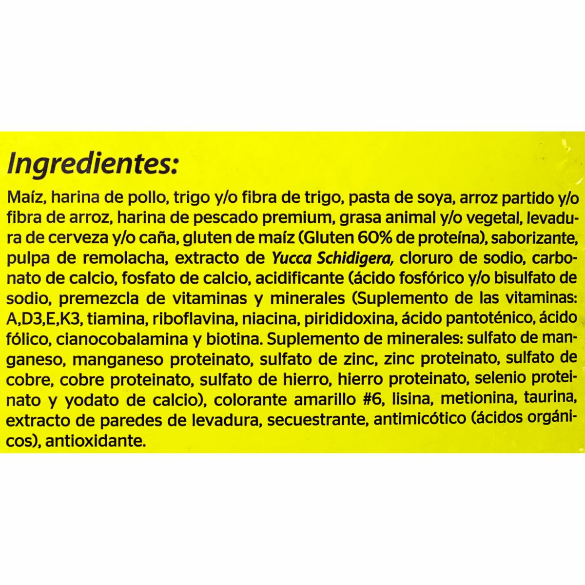 - Características: Hecho a base de proteína de pescado y cereales seleccionados Contiene vitaminas y minerales esenciales Textura crujiente que favorece la salud dental Aporta energía y fortalece el sistema inmunológico Saco resistente que conserva la frescura por más tiempo Incluye: Saco de 8kg de alimento seco sabor a pescado