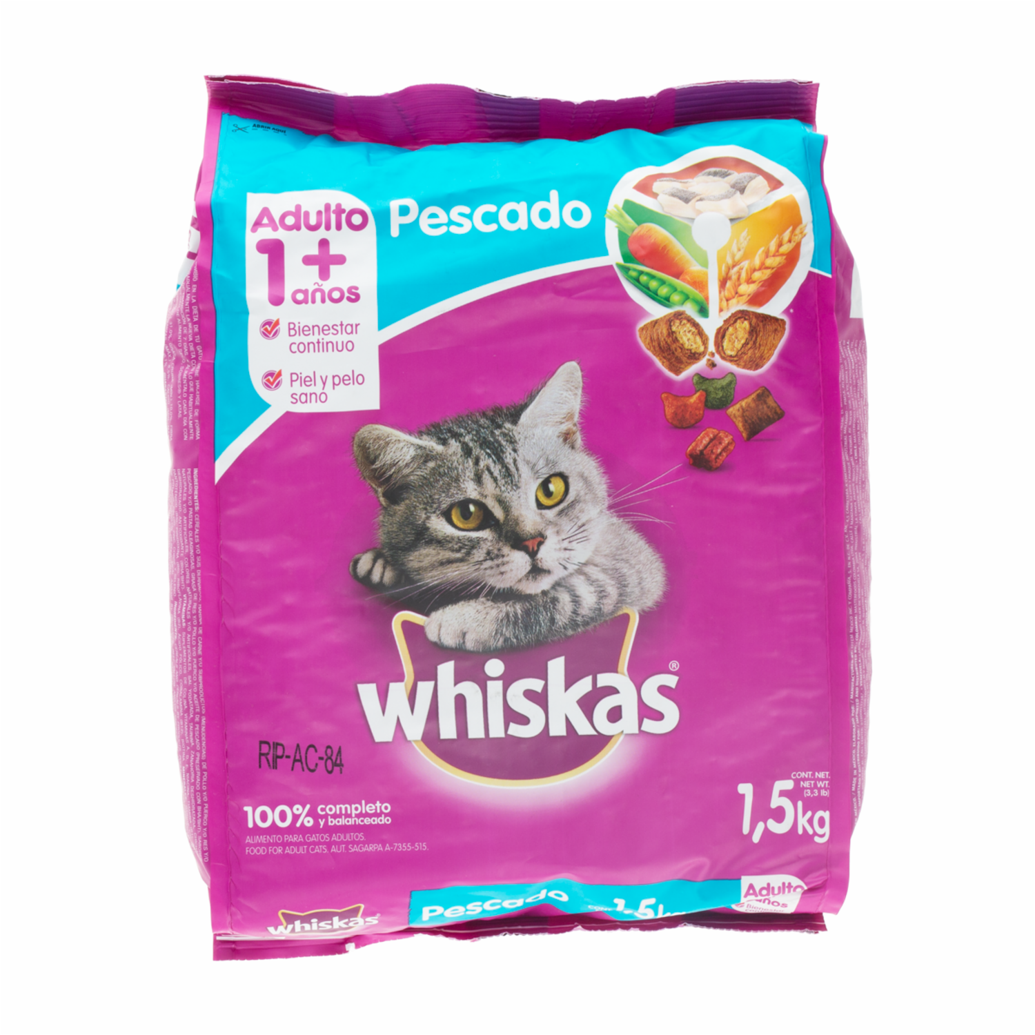 Alimento Para Gatos Sabor Pescado WHISKAS 1500 G