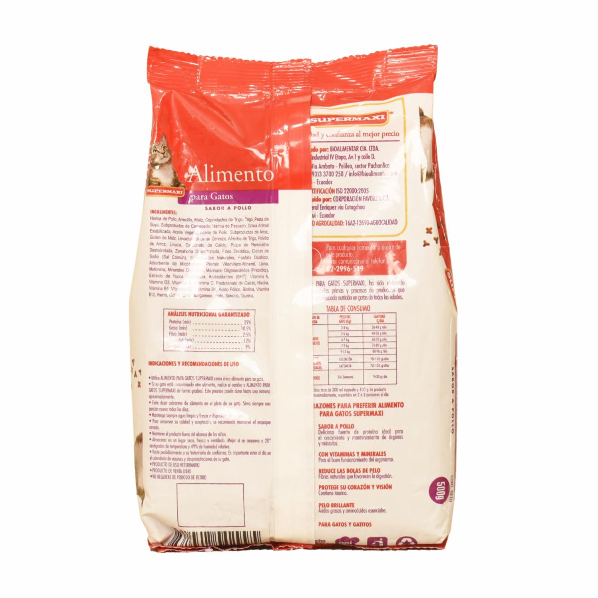 Alimento Para Gatos Y Gatitos Sabor A Pollo SUPERMAXI 500 G