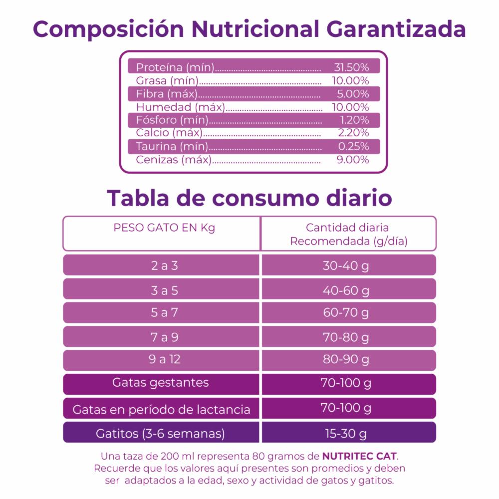 Alimento Para Gatos Y Gatitos Sabor A Pollo Y Vegetales 31.5% Proteína NUTRITEC 8 Kg