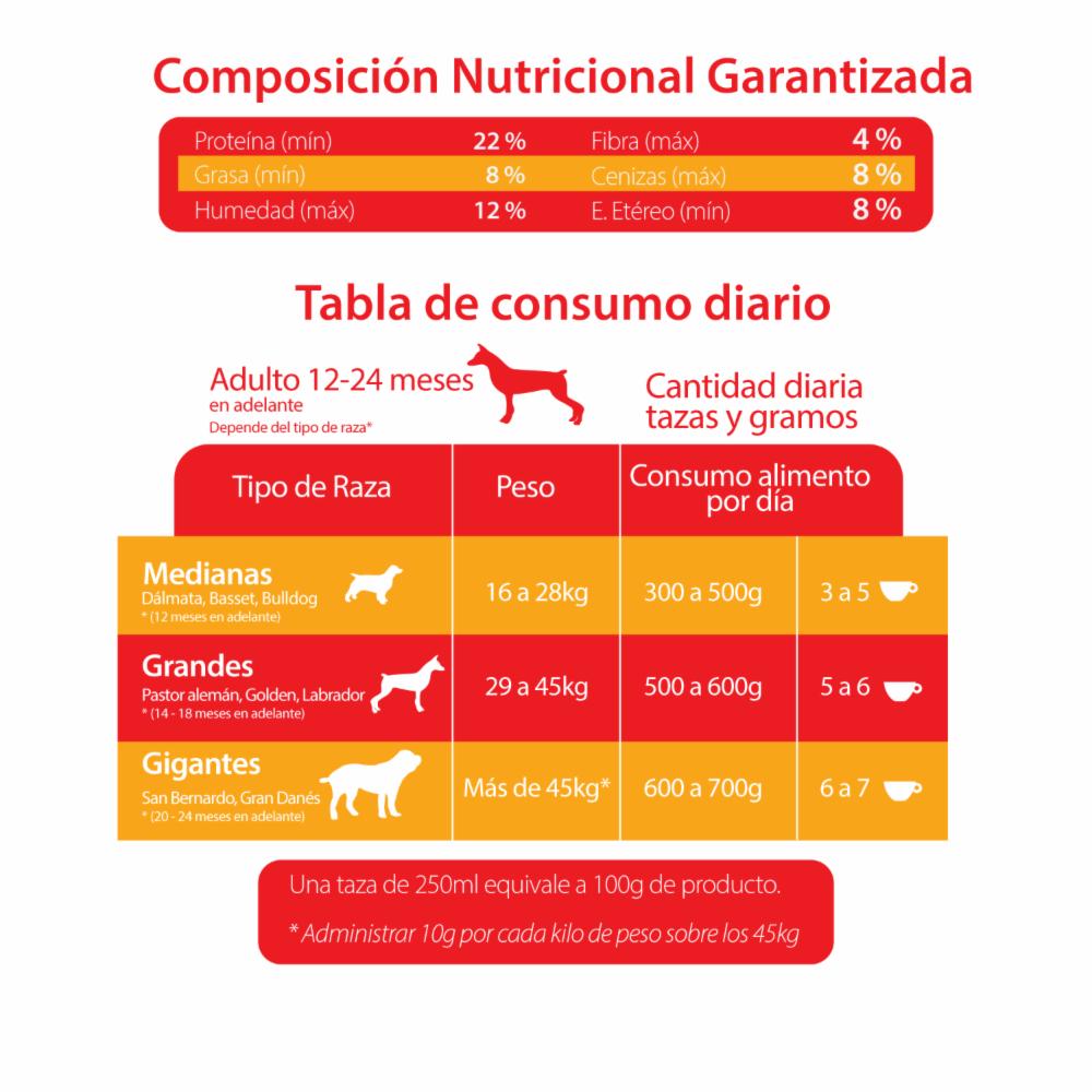 Este alimento está diseñado cuidadosamente para brindar los nutrientes esenciales que los perros adultos necesitan para mantener su energía, salud y bienestar. Incluyen proteínas de alta calidad, vitaminas, minerales y otros ingredientes clave que apoyan la salud de la piel, el pelaje, la digestión y el sistema inmunológico