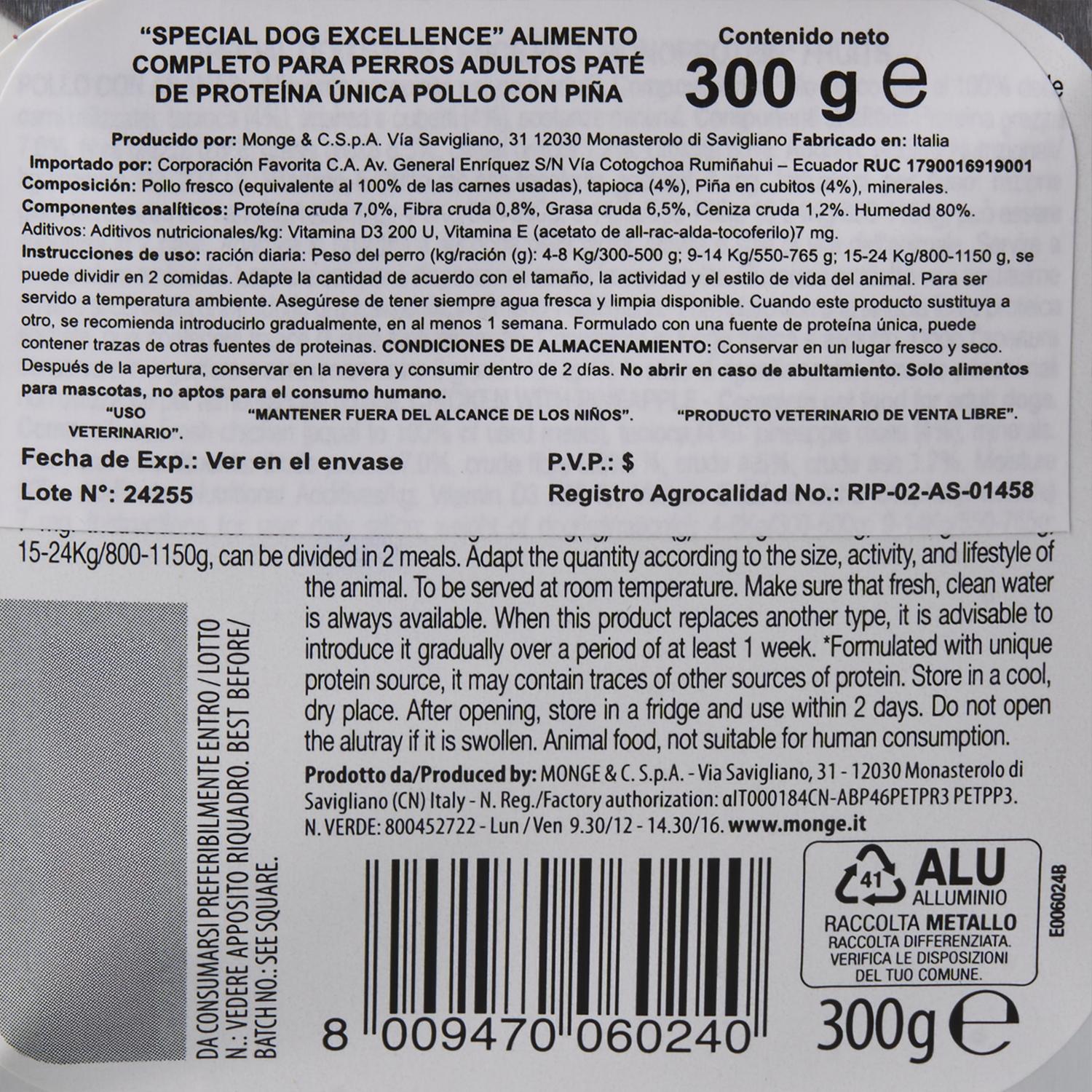 Alimento Para Perros Adultos Pate Completo De Pollo Con Piña EXCELLENCE 300 G