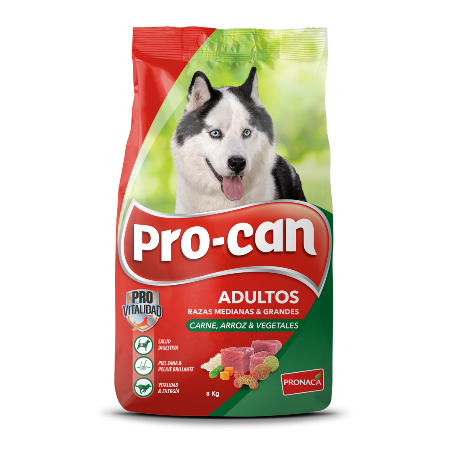 - Alimento para perros adultos razas medianas y grandes carne arroz y vegetales pro-can 2 kg