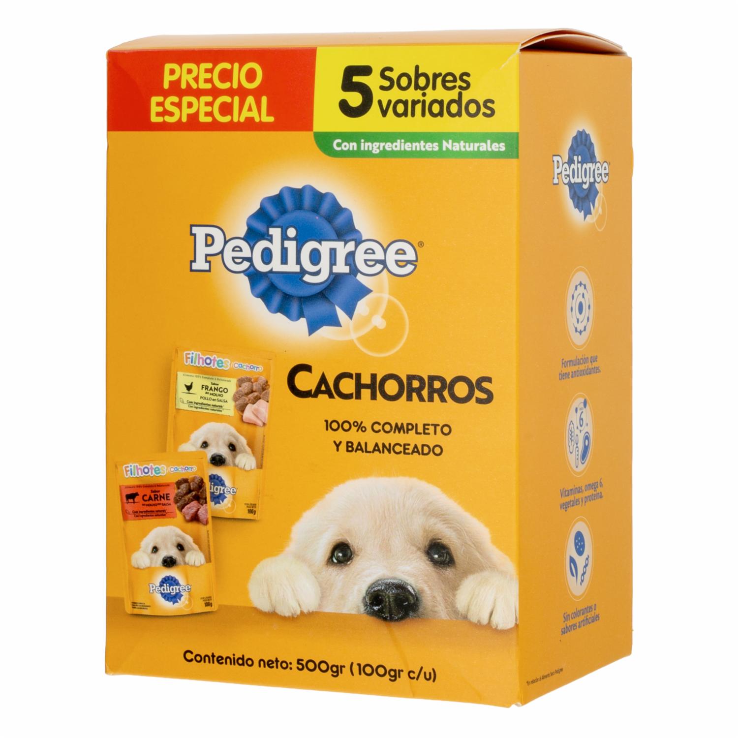 - Dale a tu cachorro un comienzo lleno de sabor y nutrición con estos prácticos sobres de Pedigree. Contienen una variedad de recetas irresistibles especialmente formuladas para su crecimiento y desarrollo. Cada sobre aporta proteínas, vitaminas y minerales esenciales en una textura suave que facilita la digestión