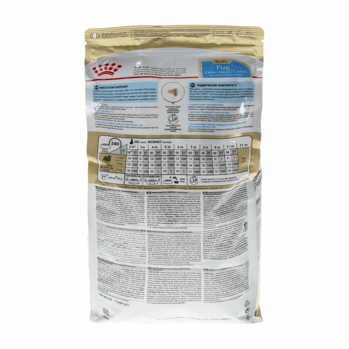 - Este alimento está formulado específicamente para satisfacer las necesidades nutricionales de los cachorros de la raza Pug. Los Pugs tienen requisitos dietéticos particulares debido a su tamaño, estructura facial y características específicas de la raza. Este alimento está diseñado para atender esas necesidades en la etapa de cachorro