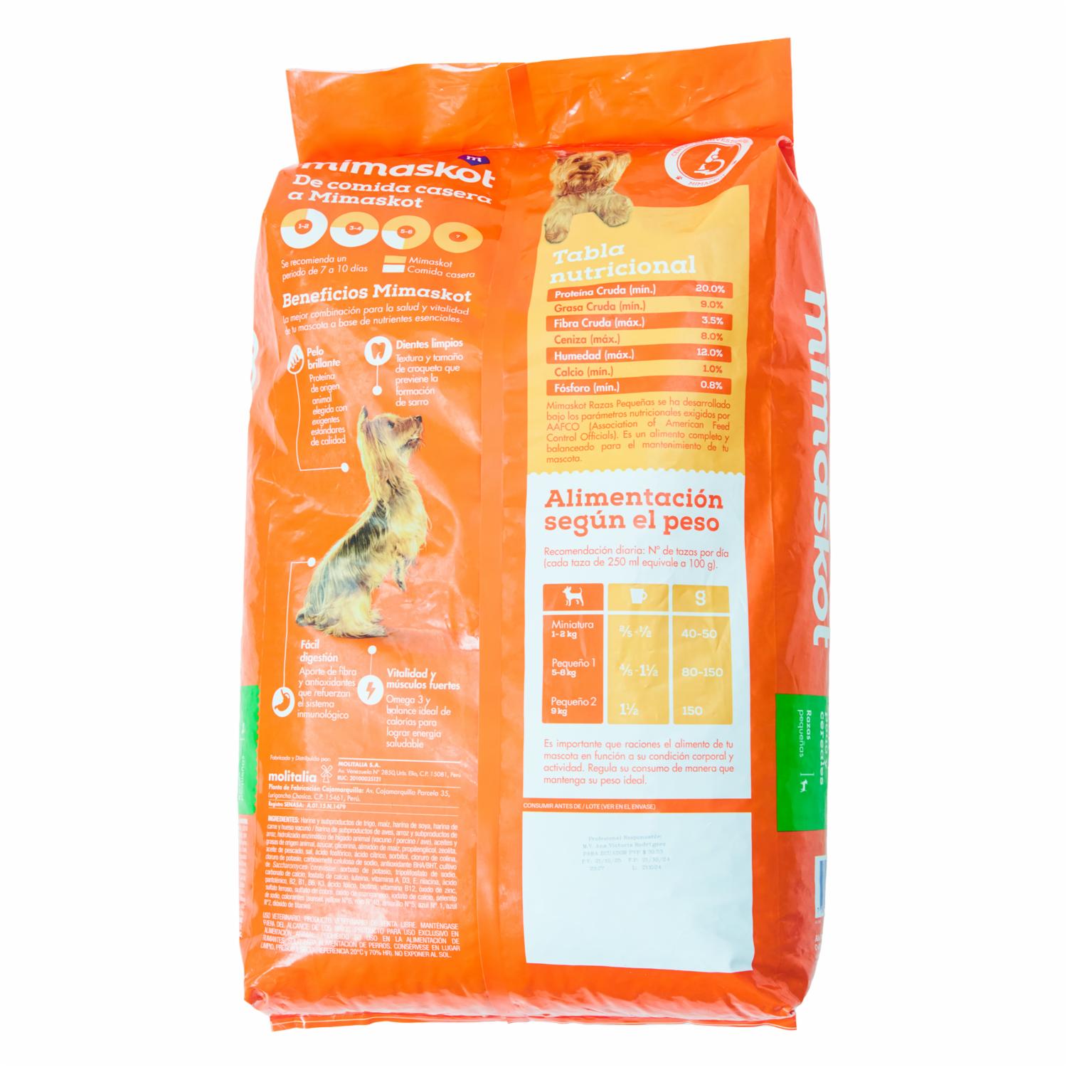 - El "Alimento Para Perros Adultos Razas Pequeñas MIMASKOT" es un alimento seco diseñado para perros adultos de razas pequeñas. Está formulado para ofrecer una nutrición completa y equilibrada adaptada a las necesidades de los perros pequeños en esta etapa de la vida