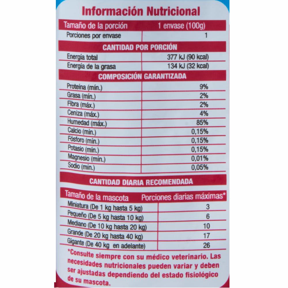 Alimento húmedo para perro con trocitos de carne en salsa que deleita con su sabor irresistible. Su fórmula balanceada aporta hidratación y nutrición en cada porción. Ideal para mezclar con croquetas o servir solo como un premio especial